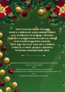 W wyjątkowej, pełnej ciepła i radości atmosferze odbyło się spotkanie świąteczne całej społeczności szkolnej. Uroczystość rozpoczęła się modlitwą, którą poprowadził ksiądz proboszcz, a następnie został odczytany fragment z Pisma Świętego, wprowadzający wszystkich w refleksyjny, bożonarodzeniowy nastrój. Podczas naszego spotkania świątecznego obecne było Światło Betlejemskie – symbol pokoju, nadziei i jedności.