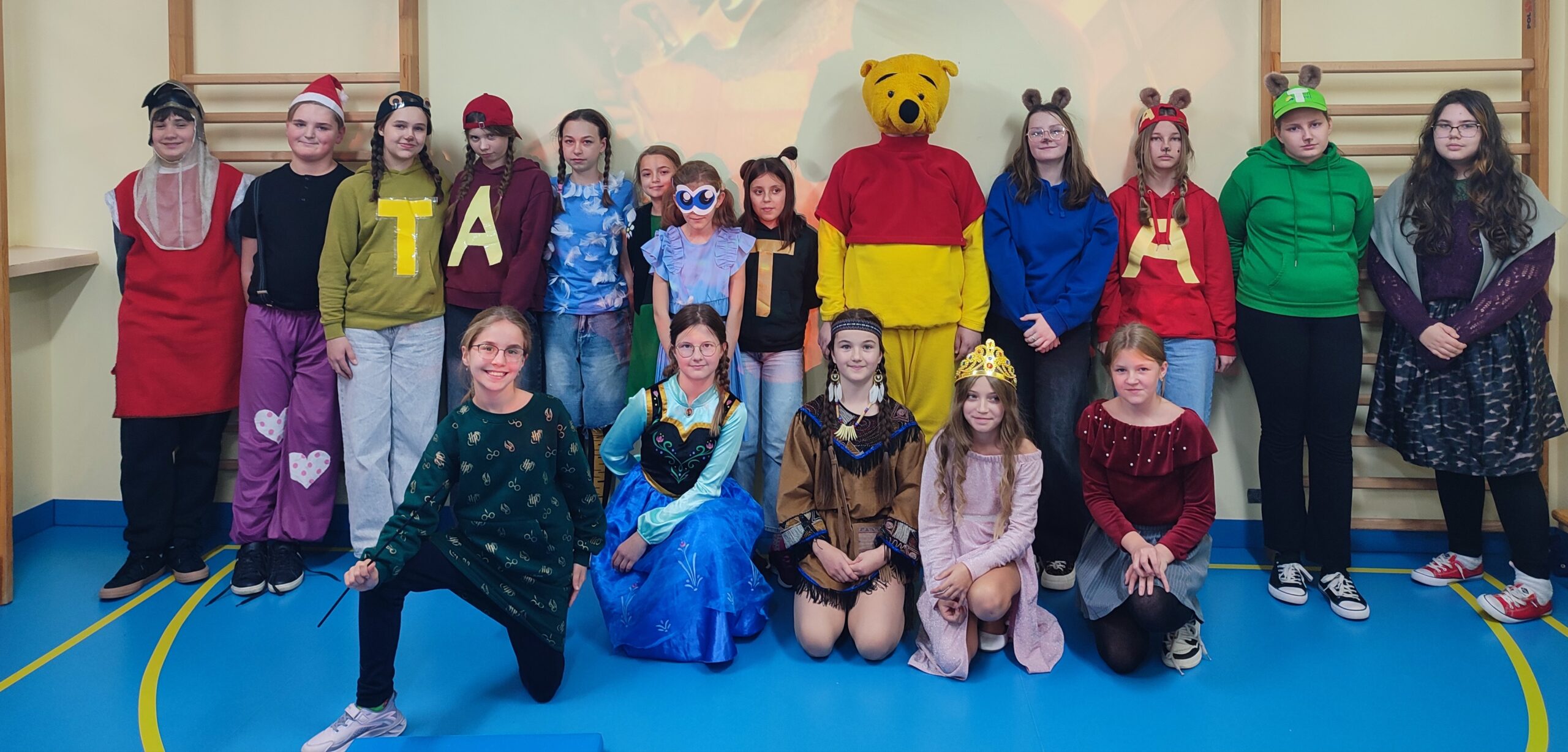 5 listopada w naszej szkole odbył się Dzień Postaci z Bajek, zorganizowany z inicjatywy Samorządu Uczniowskiego. Tego dnia szkolne korytarze wypełniły się bohaterami znanych i lubianych bajek. Dzieci z radością prezentowały swoje stroje. Na zakończenie dnia wspólnie obejrzały bajkę wybraną przez siebie, ciesząc się wspólnym czasem i bajkową atmosferą.