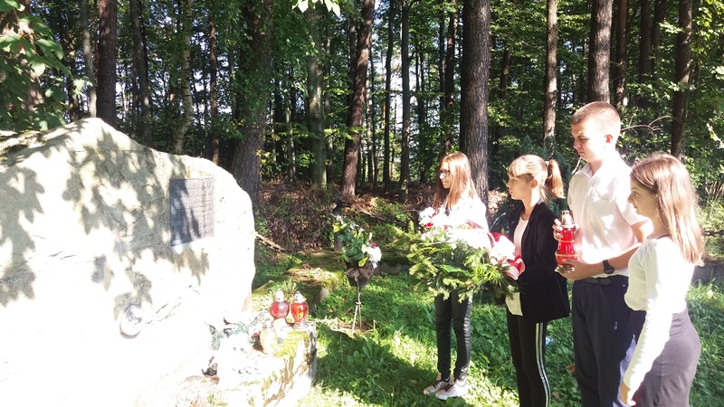Dnia 3 września 2019 r. Pani Dyrektor wraz z delegacją uczniów z klasy 7: Magdaleną Orczyk, Leną Mróz, Wiktorią Bałut oraz Arkadiuszem Słowikiem udała się do Piotrkowic, aby złożyć kwiaty i zapalić znicze pod pomnikiem pomordowanych w czasie II wojny światowej i uczcić pamięć ludzi, którzy zginęli w tutejszym lesie. Odwiedziliśmy także miejscowego Księdza Proboszcza z drobnym upominkiem z okazji jego imienin.