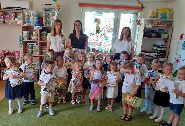 Ten rok minął nam bardzo szybko, było wiele zabawy i nauki, mnóstwo wspaniałych chwil. Przedszkole stało się dla dzieci drugim domem. Mamy nadzieję, że wszyscy będziemy wspominać te wspólne miesiące z uśmiechem na twarzy. Starałyśmy się aby jak najlepiej przygotować dzieci do dalszej edukacji. Część dzieci nadal z nami zostaje i cieszymy się, że będziemy się jeszcze spotykać. Dziękujemy wam drogie Dzieci – za codzienny uśmiech i radość jaką nas obdarowywałyście, za entuzjazm i spontaniczność. Rodzicom za zaangażowanie oraz owocna współpracę. Życzymy Wam wspaniałych wakacji, udanego wypoczynku, samych słonecznych dni oraz bezpiecznego powrotu do przedszkola po wakacjach.
