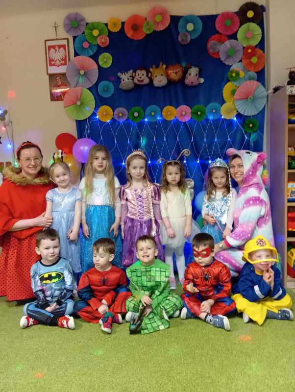 Karnawał to tradycja przepełniona muzyką i zabawą, gdzie ważnym elementem tego okresu są bale karnawałowe. Bal karnawałowy dla przedszkolaków to dzień niezwykły, często wyczekiwany przez wiele tygodni. Jest atrakcją bardzo lubianą przez dzieci, dostarczającą im wielu przeżyć i radości. Tak też było u nas. 24 lutego w naszym przedszkolu odbył się bal karnawałowy. Tego dnia już od rana pojawiały się kolorowe postacie. Dzieci przebrane były za bohaterów znanych bajek, rozpoznać je było bardzo trudno. W pierwszej kolejności dzieci miały możliwość pozowania do zdjęć indywidualnych i grupowych. Następnie odbyły się gry, zabawy i tańce. Na sali podczas pląsów robiło się kolorowo, wszyscy bawili się wesoło, uśmiech nie znikał z twarzy mimo chwilowego zmęczenia. Bal umożliwił dzieciom i wychowawcom spędzenie czasu w miłej atmosferze. Dziękujemy rodzicom za przygotowanie słodkiego poczęstunku, którym dzieci mogły się posilić podczas odpoczynku w zabawie.
