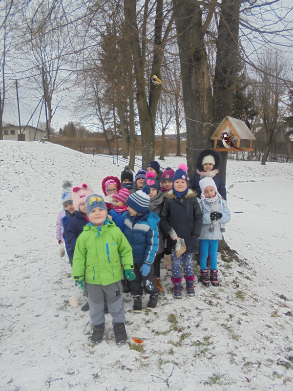 Zima jest dla ptaków bardzo ciężkim okresem, ze względu na niską temperaturę i trudne warunki pogodowe. W związku z tym ptaki mogą mieć problemy ze znalezieniem odpowiedniej ilości pokarmu. Dzieci z klasy „0” dbają o to, aby ich skrzydlaci przyjaciele podczas tegorocznej, mroźnej zimy nie były głodne. Dobrze wiedzą, co ptaki powinny jeść i chętnie przyniosły do przedszkola pokarm dla swoich skrzydlatych przyjaciół. W przedszkolnym ogrodzie mają do dyspozycji kilka karmników, które uzupełniają ptasimi smakołykami. Dokarmiając ptaki, przedszkolaki rozbudzają swoje zainteresowania i uwrażliwiają na przyrodę, a także zyskują poczucie, że robią coś dobrego dla innych. Jest to również doskonała okazja do kształtowania u dzieci poczucia odpowiedzialności za innych.
