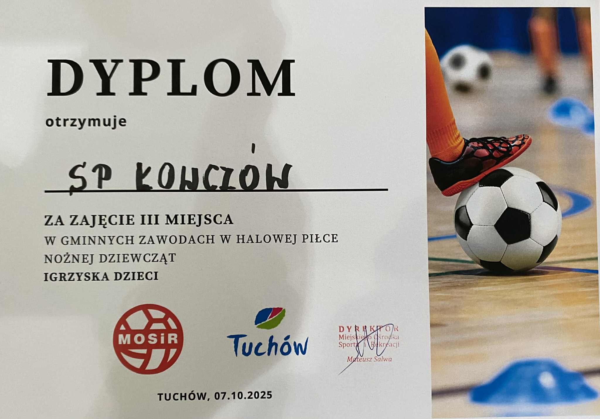 We wtorek 7 października odbyły się gminne zawody dzieci w piłce nożnej halowej dziewcząt. Drużyna w składzie: Julia Szatko, Julia Cetera, Dominika Kwolek, Luiza Wantuch, Lena Wróbel, Laura Czermak, Aleksandra Olechny, Hanna Bachula zajęły bardzo wysokie III miejsce. Serdeczne Gratulacje.