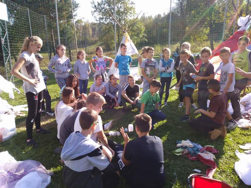 Koniec września to czas, kiedy w naszej szkole odbył się tzw „zaciąg” czyli akcja naborowa do gromady zuchowej oraz drużyny harcerskiej. Uczestnicy zostali przeniesieni w indiański świat, a w nim zabawy, gry, majsterki, pląsy, elementy technik harcerskich i oczywiście ognisko, przy którym miło spędziliśmy czas zajadając się pieczonymi kiełbaskami.