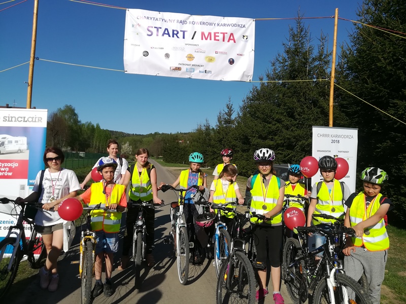 W niedzielne popołudnie dziewięciu uczniów naszej szkoły uczestniczyło w I Charytatywnym Rodzinnym Rajdzie Rowerowym w Karwodrzy. Celem głównym imprezy była pomoc dla Pana Krzysztofa Krzemienia, poszkodowanego w wypadku mieszkańca Karwodrzy. Trud włożony w pokonanie wyznaczonej trasy był wart swojej ceny, nauczył nas, że warto się poświęcić dla innych, zatrzymać się i dostrzec potrzeby ludzi, którzy żyją tuż obok nas w tym zabieganym świecie. Nasi uczniowie zmęczeni ale z uśmiechem na ustach dojechali do mety. Bardzo dziękujemy za pomoc w opiece nad dziećmi oraz za miłe towarzystwo mamie Arka Słowika. Organizacją wyjazdu zajmowały się panie Joanna Łaś i Krystyna Kruczek, które również uczestniczyły w tym rajdzie.