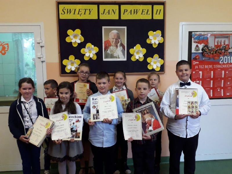W piątek 18 maja w Szkole Podstawowej w Zabłędzy odbył się IX Gminny Konkurs Wiedzy o Świętym Janie Pawle II. Naszą placówkę reprezentowali uczniowie klasy III, Kornelia Ciszek i Radosław Kruczek. W zmaganiach konkursowych brało udział 5 szkół z terenu gminy.