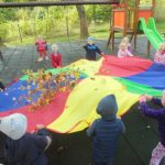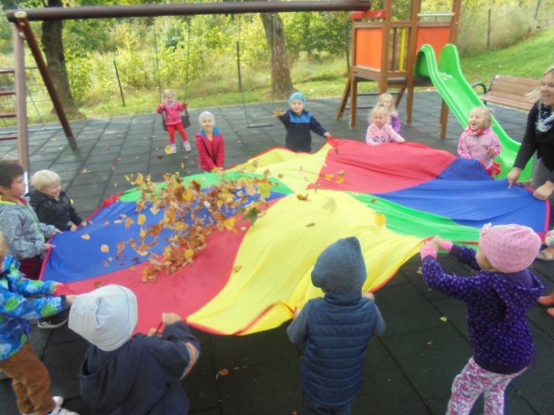 Pierwszy dzień kalendarzowej jesieni za nami. Nazwaliśmy go „czerwonym dniem”, ten właśnie bowiem kolor kojarzy się nam z porą roku, którą witaliśmy. Dzieci wystrojone w czerwone ubrania wyruszyły na poszukiwania pani Jesieni do ogrodu przedszkolnego. Pani Jesień ukryła się w pożółkłych liściach, kasztanach i żołędziach leżących na trawie, w dojrzałych czerwonych koralach jarzębiny, w pachnących grzybach. Dzięki „magicznym talizmanom”, które każdy przedszkolak miał przy sobie udało nam się ją wytropić. Wspólnie i wesoło bawiąc się minął nam pierwszy jesienny dzień. Teraz nie pozostaje nam nic innego jak każdego kolejnego dnia obserwować zmiany jakie przyniesie nam nowa pora roku.