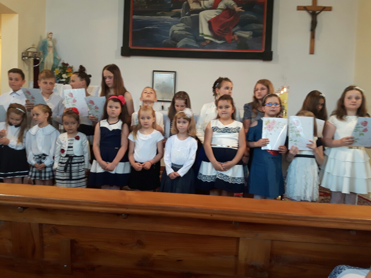 Maj to miesiąc, w którym przypada wyjątkowe święto – Dzień Matki. Z tej okazji, 29 maja 2017 roku, uczniowie naszej szkoły zaprosili swoje mamy do miejscowej kaplicy na specjalne wieczorne nabożeństwo. Była to okazja, by podziękować nie tylko mamom ziemskim za opiekę i miłość, ale także zwrócić się do Matki Bożej – najlepszej z matek. Podczas występu dzieci deklamowały wiersze, wyrażające ich wdzięczność za życie, uśmiech i wychowanie. Nabożeństwo było przeplatane pieśniami maryjnymi, wykonywanymi wspólnie z przybyłymi gośćmi. Ich dźwięk rozbrzmiewał echem w całej kaplicy. Następnie każda z mam otrzymała bukiecik polnych kwiatów, a delegacja poszczególnych klas złożyła barwne wiązanki pod figurą Matki Bożej. Na zakończenie wszyscy, pod przewodnictwem księdza katechety, odśpiewali Litanię Loretańską.