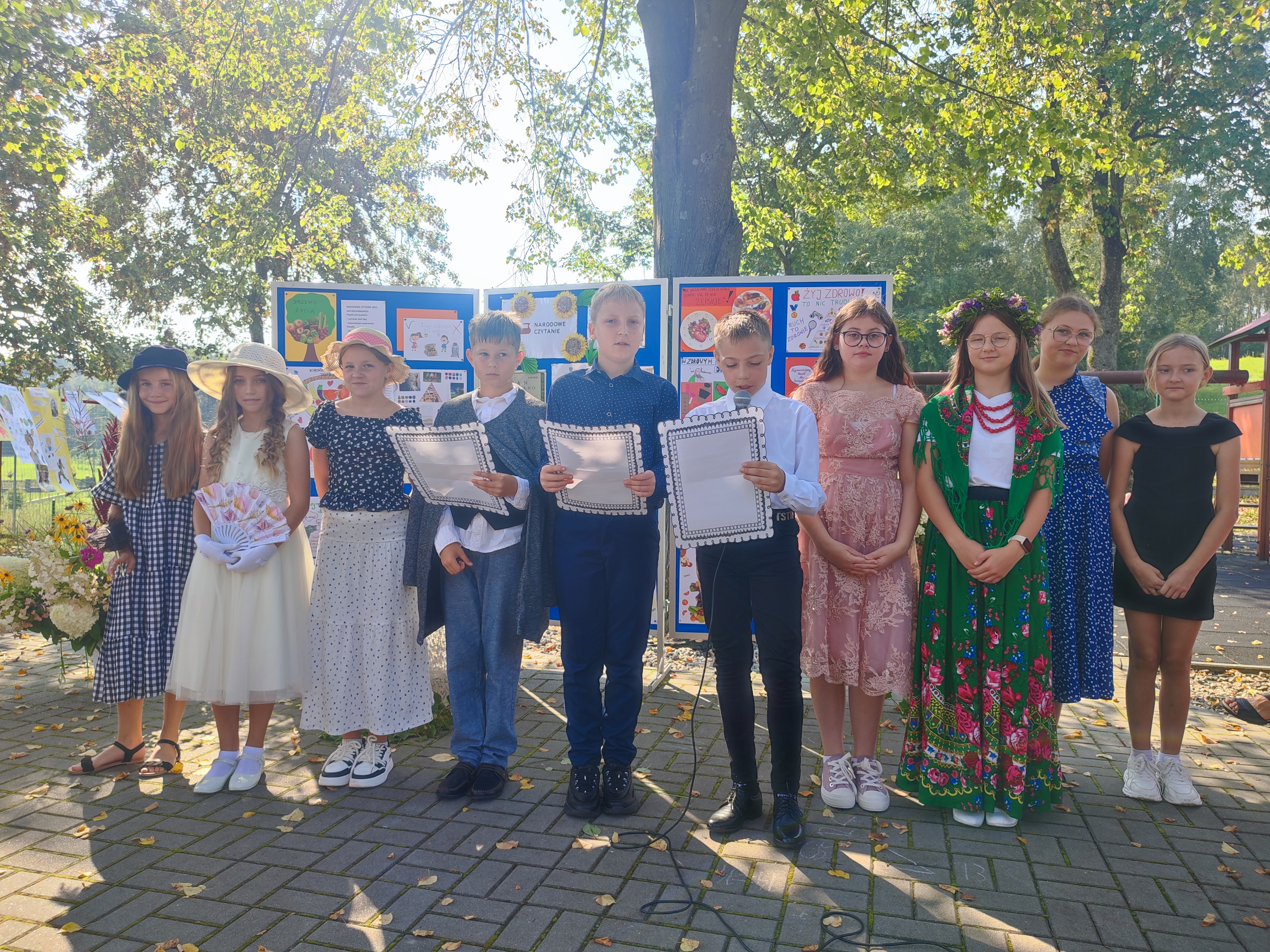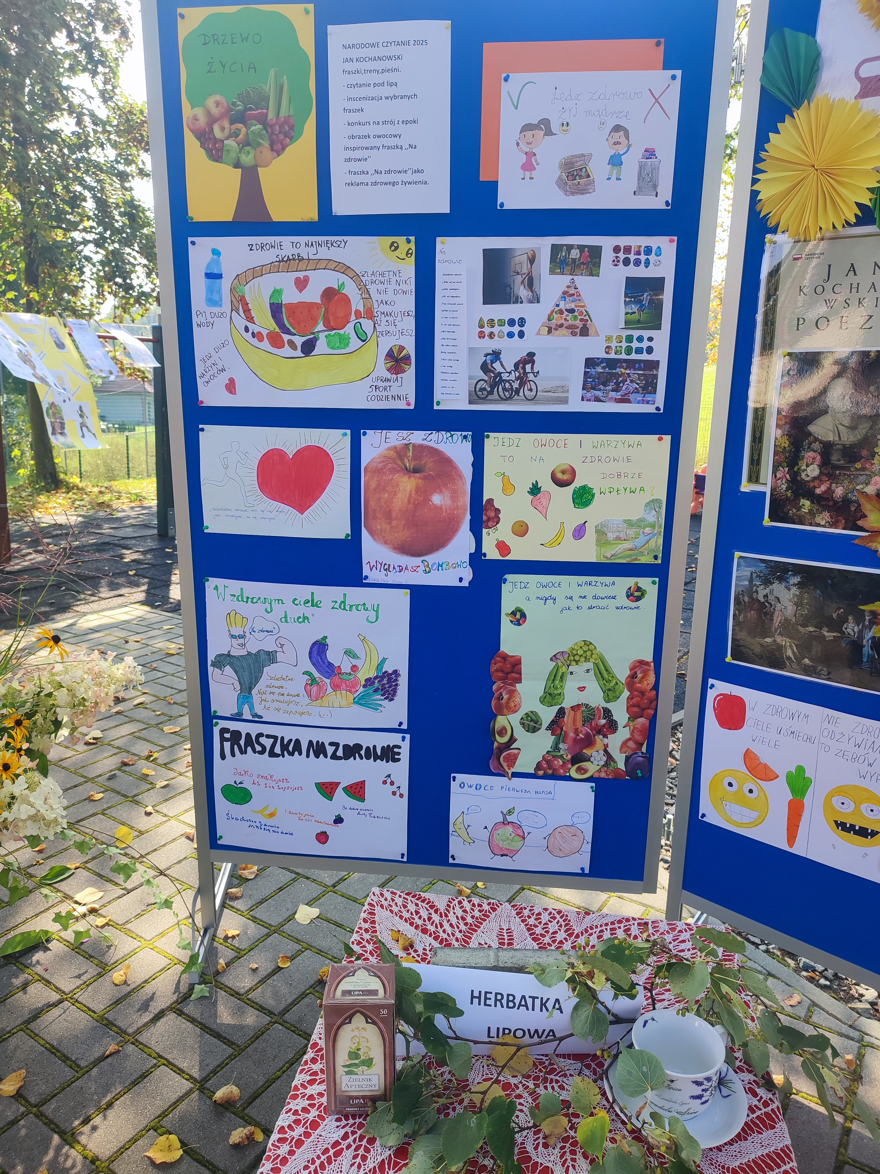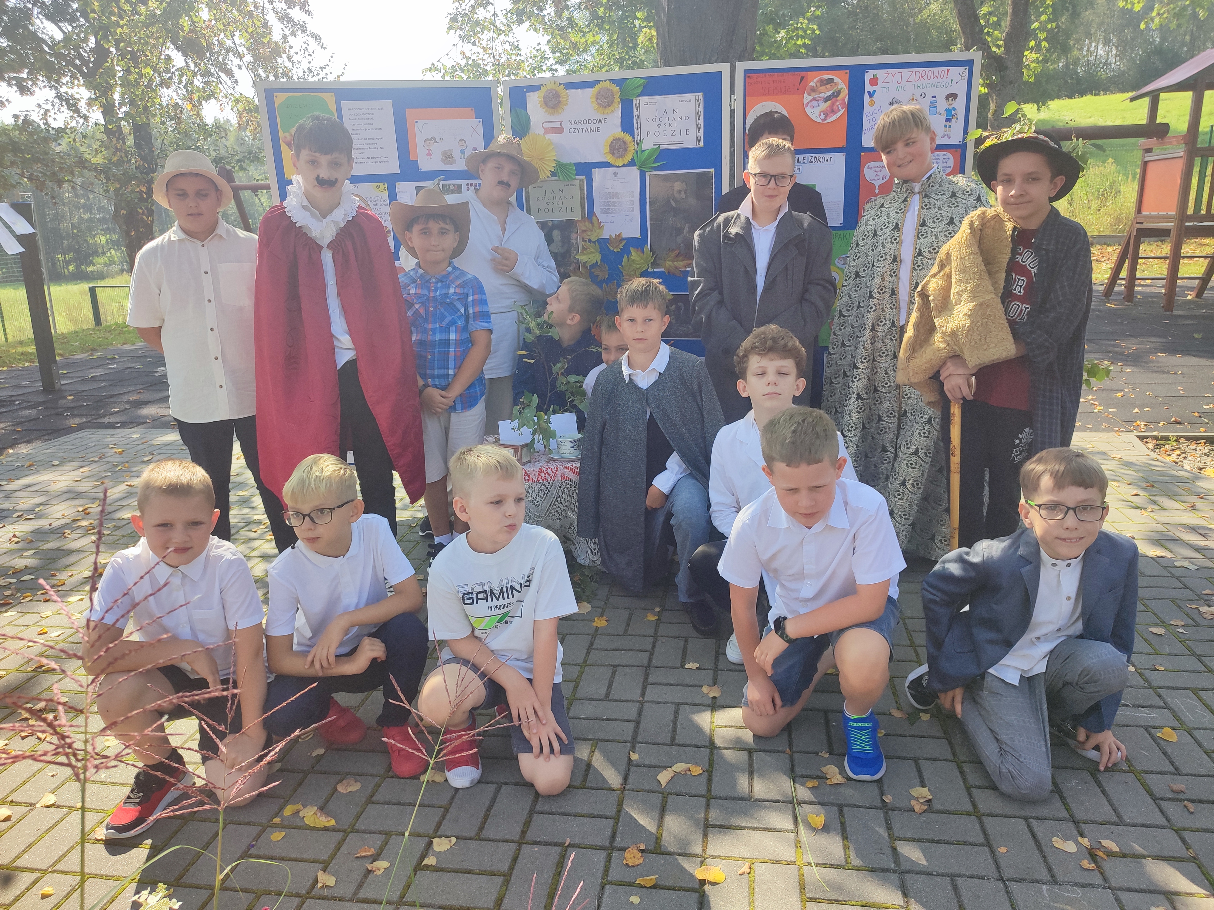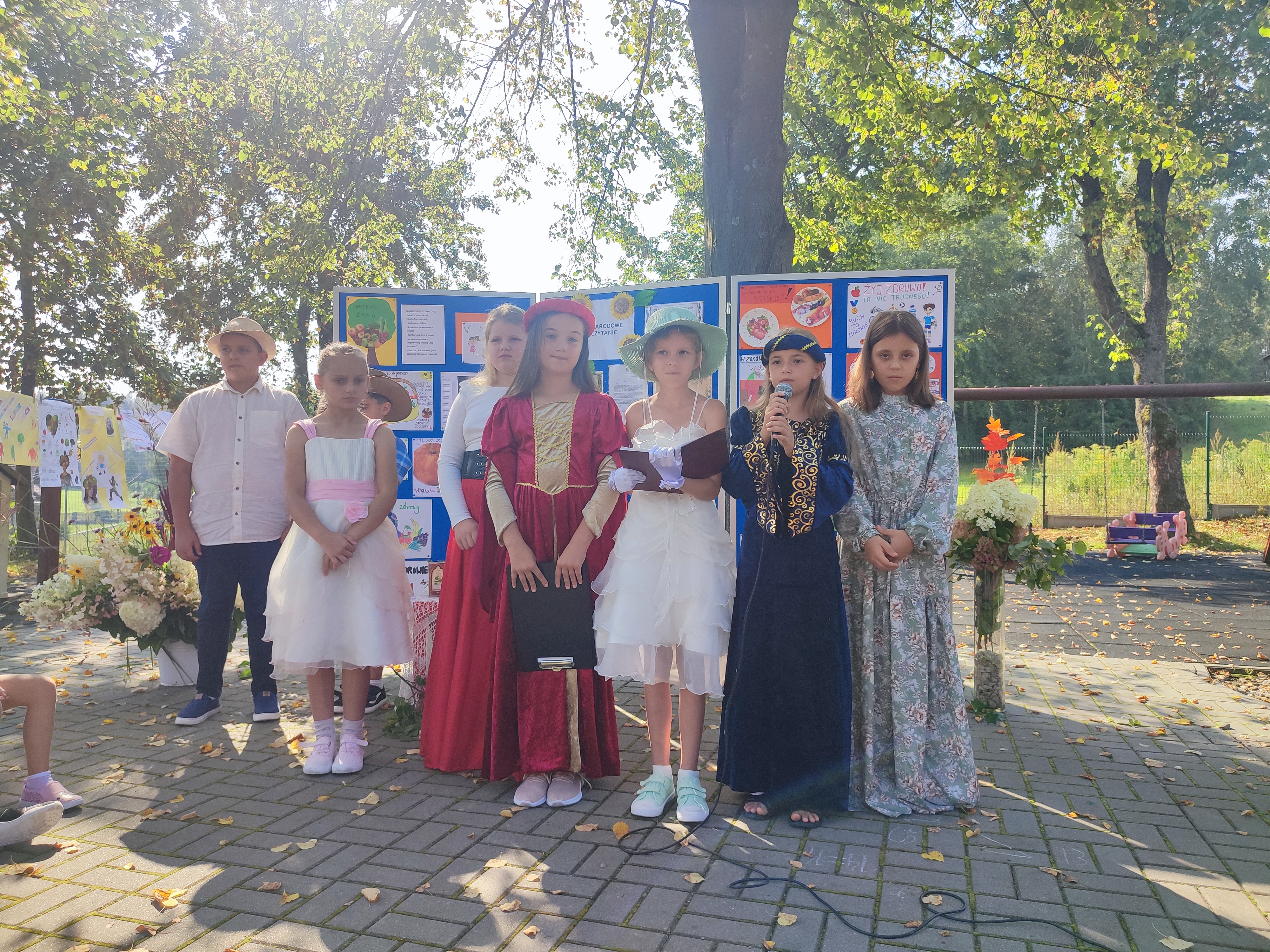 W piątek 5 września w naszej szkole odbyło się Narodowe Czytanie. W tym roku czytaliśmy utwory Jana Kochanowskiego. Ten renesansowy poeta uznawany jest za ojca literatury polskiej. Tworzył pieśni, fraszki i treny. Chodź mistrz z Czarnolasu żył w XVI w. jego utwory są aktualne do dziś. Akcja Narodowego Czytania w naszej szkole po raz kolejny odbyła się na świeżym powietrzu, na placu zabaw, w cieniu…lip. Była to świetna sceneria – szczególnie do odczytania fraszki „Na lipę”. Uczniowie klas II-VIII przedstawili piękne recytacje utworów Kochanowskiego. Dodatkową atrakcją były pomysłowe przebrania dzieci nawiązujące do epoki, w której żył poeta. Dekoracjami były plakaty promujące zdrowy styl życia zainspirowane fraszką „Na zdrowie”. następnie odbyły się warsztaty kulinarne. Uczniowie tworzyli na talerzykach obrazki z owoców. Oczywiście dzieła zostały zjedzone ze smakiem, ale wcześniej sfotografowane. Na koniec dzieci malowały kredą kolorowe półmiski pełne owoców. Pogoda dopisywała – nastroje również. A my po raz kolejny przekonaliśmy się, że czytanie to fantastyczna zabawa.