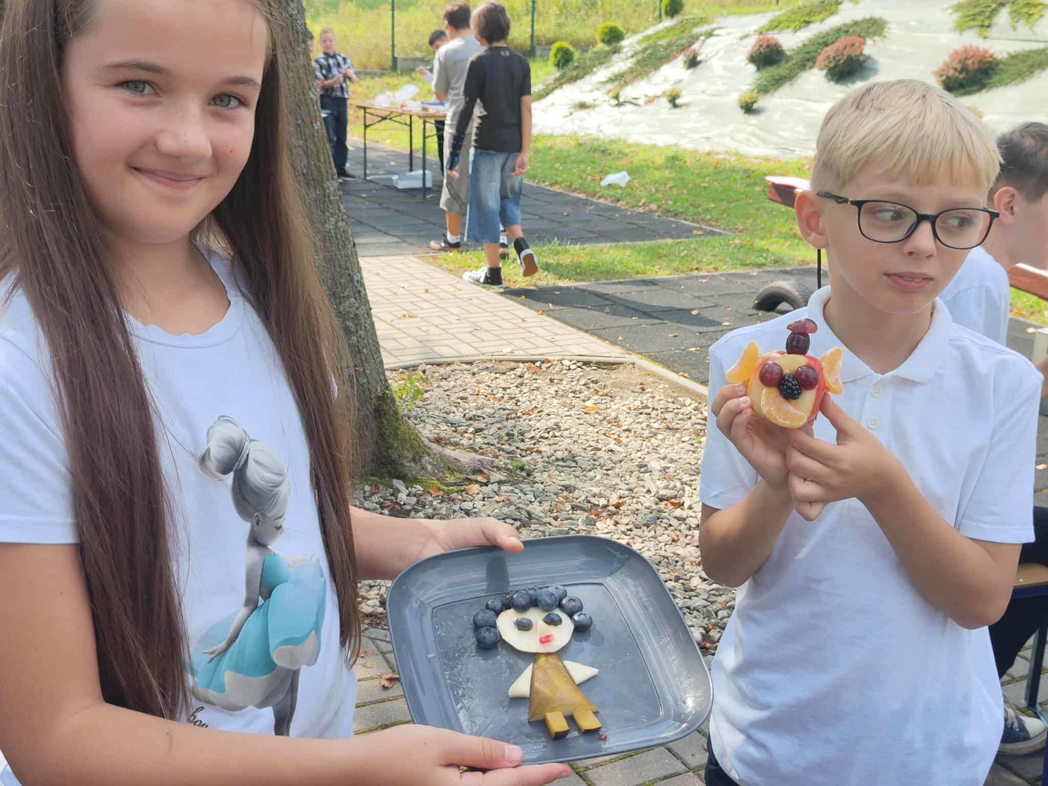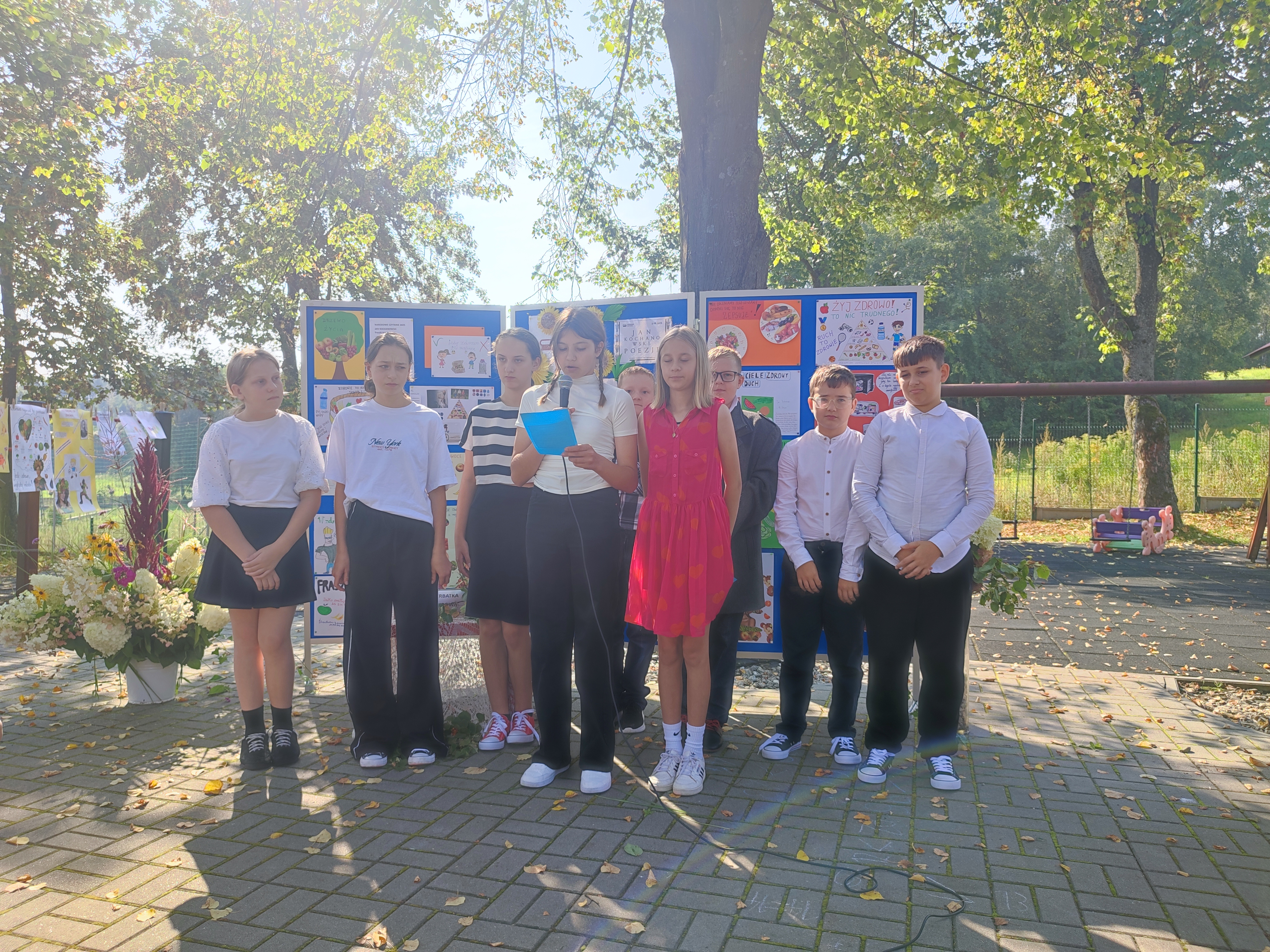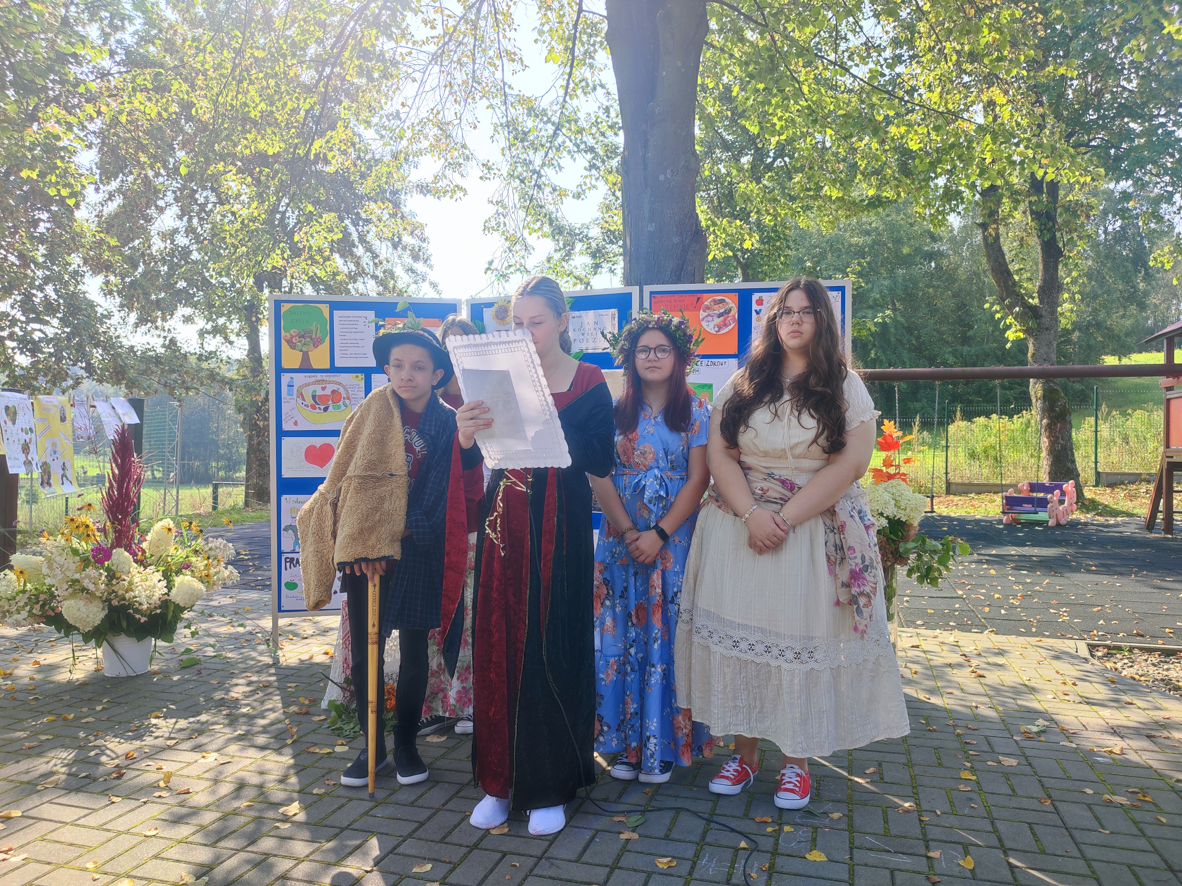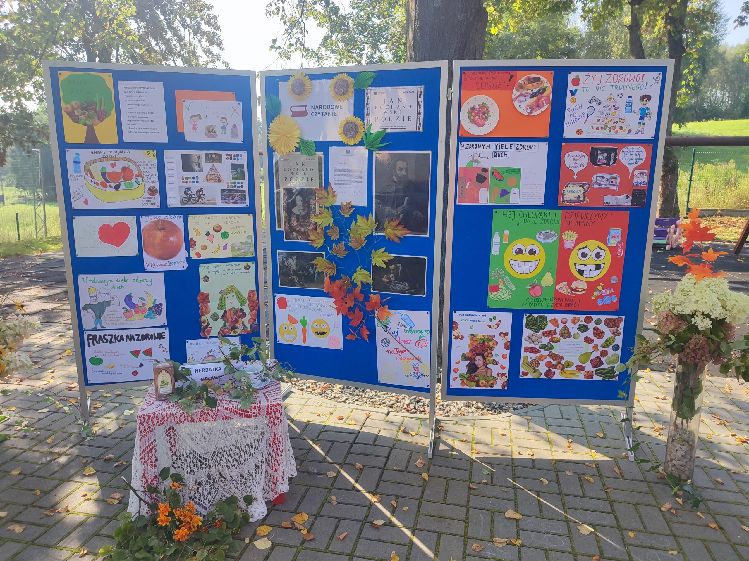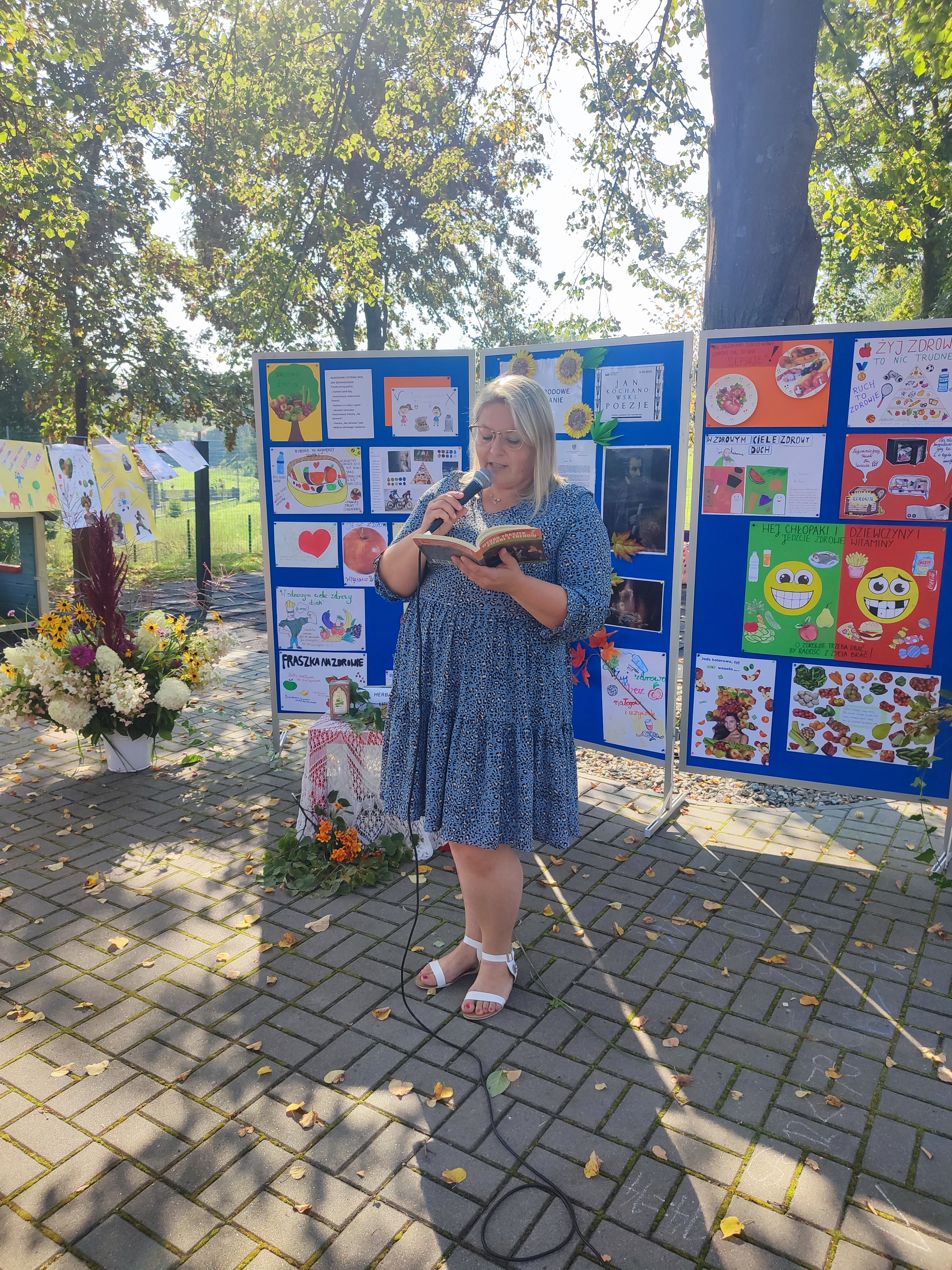 W piątek 5 września w naszej szkole odbyło się Narodowe Czytanie. W tym roku czytaliśmy utwory Jana Kochanowskiego. Ten renesansowy poeta uznawany jest za ojca literatury polskiej. Tworzył pieśni, fraszki i treny. Chodź mistrz z Czarnolasu żył w XVI w. jego utwory są aktualne do dziś. Akcja Narodowego Czytania w naszej szkole po raz kolejny odbyła się na świeżym powietrzu, na placu zabaw, w cieniu…lip. Była to świetna sceneria – szczególnie do odczytania fraszki „Na lipę”. Uczniowie klas II-VIII przedstawili piękne recytacje utworów Kochanowskiego. Dodatkową atrakcją były pomysłowe przebrania dzieci nawiązujące do epoki, w której żył poeta. Dekoracjami były plakaty promujące zdrowy styl życia zainspirowane fraszką „Na zdrowie”. następnie odbyły się warsztaty kulinarne. Uczniowie tworzyli na talerzykach obrazki z owoców. Oczywiście dzieła zostały zjedzone ze smakiem, ale wcześniej sfotografowane. Na koniec dzieci malowały kredą kolorowe półmiski pełne owoców. Pogoda dopisywała – nastroje również. A my po raz kolejny przekonaliśmy się, że czytanie to fantastyczna zabawa.