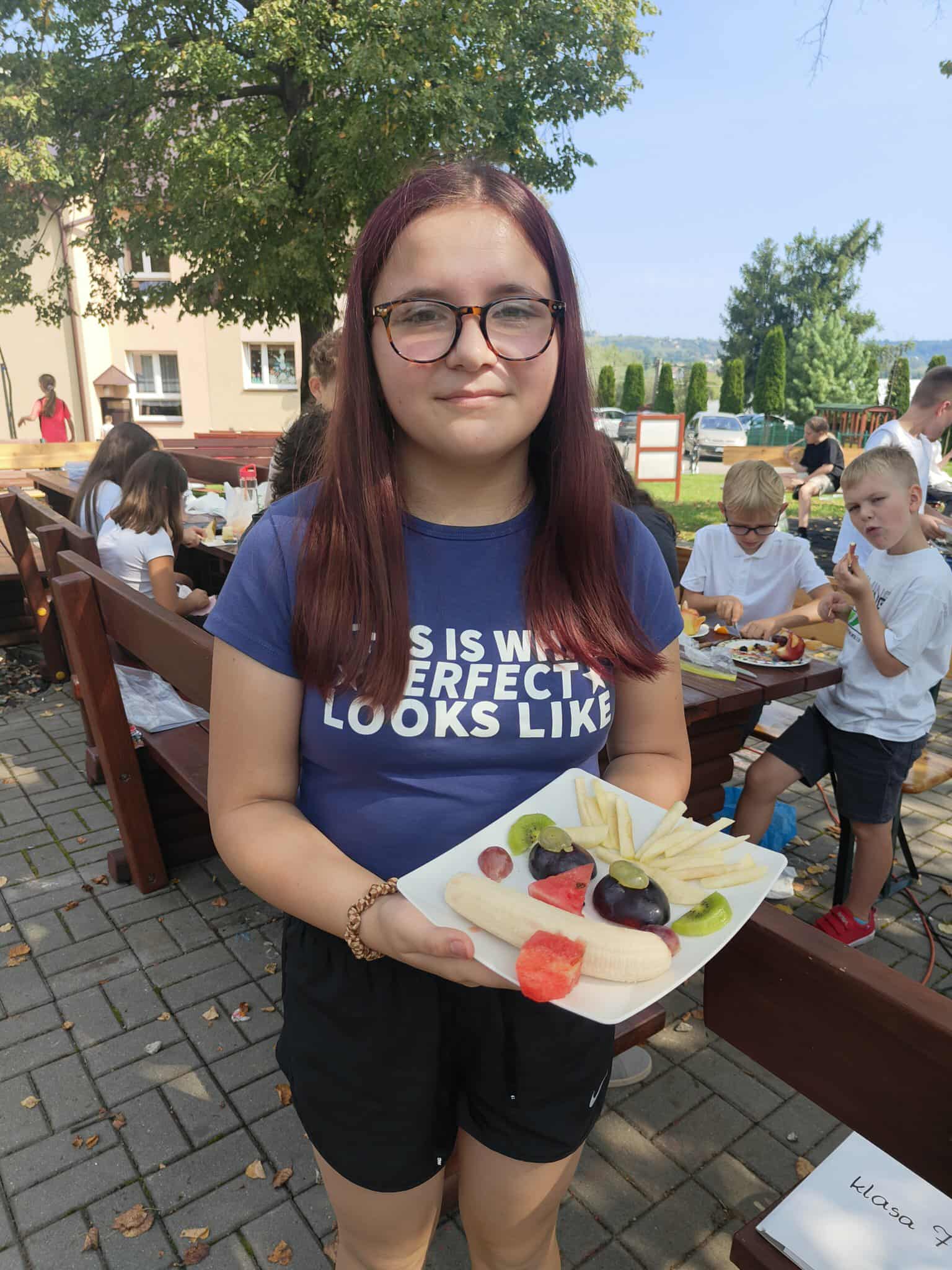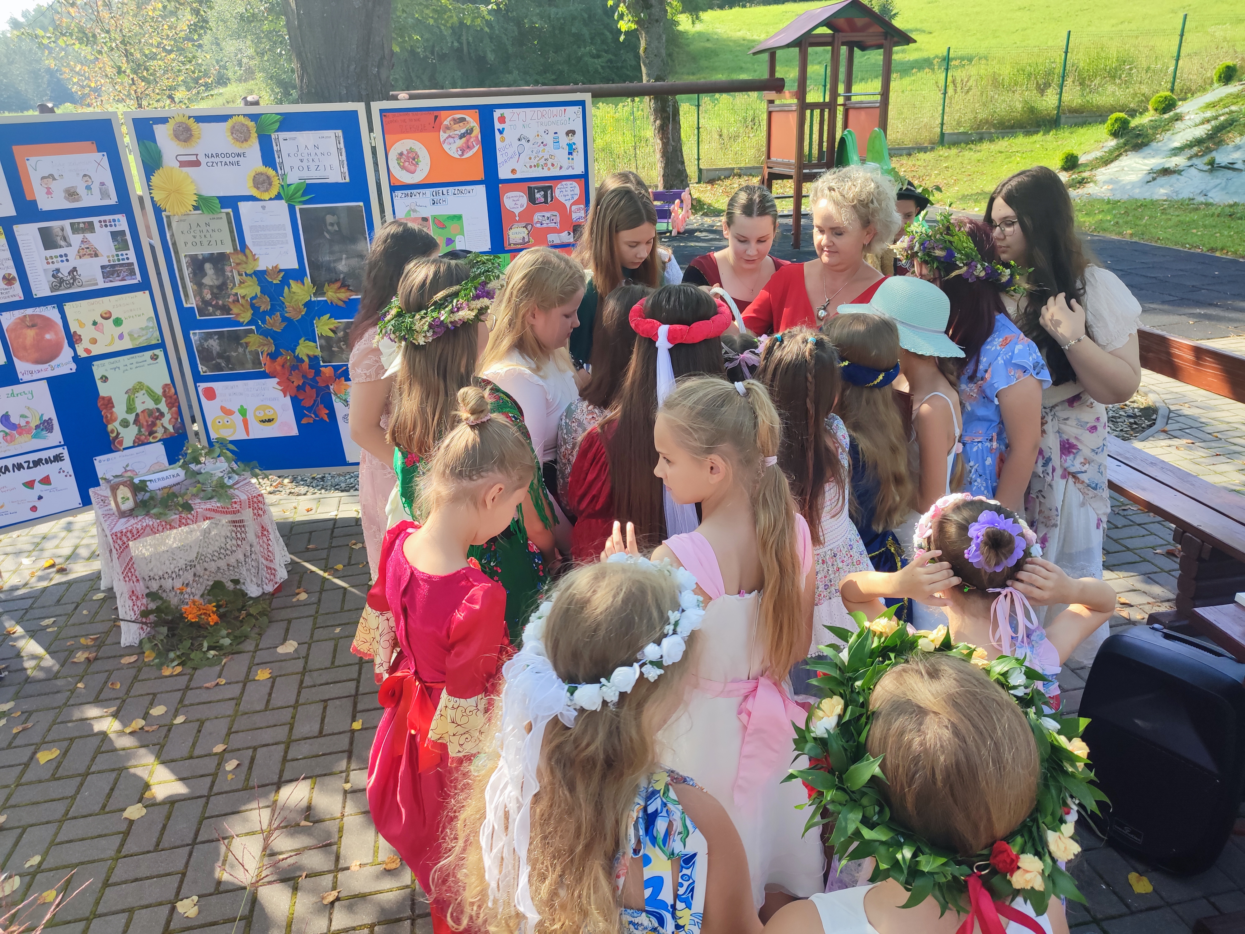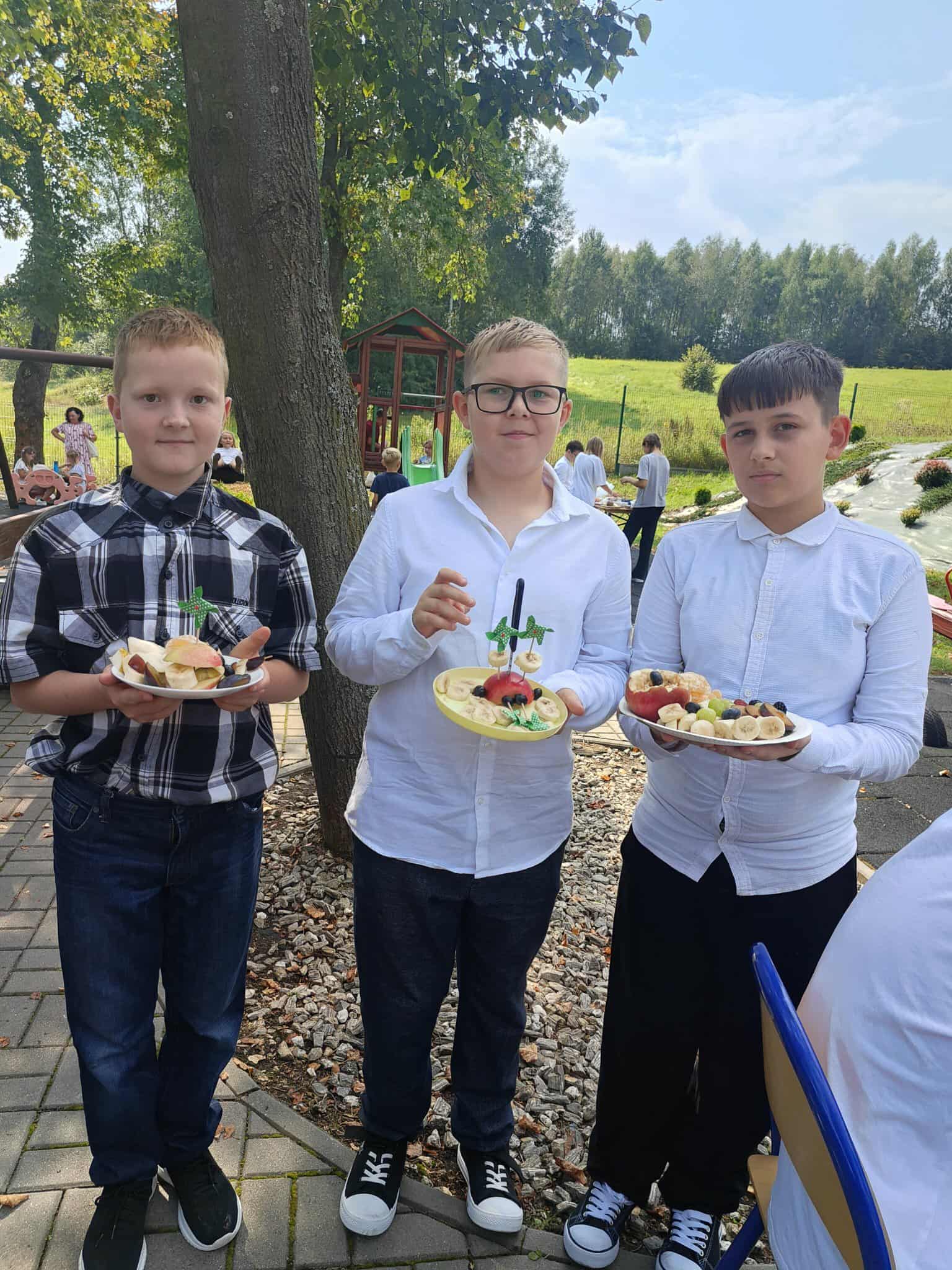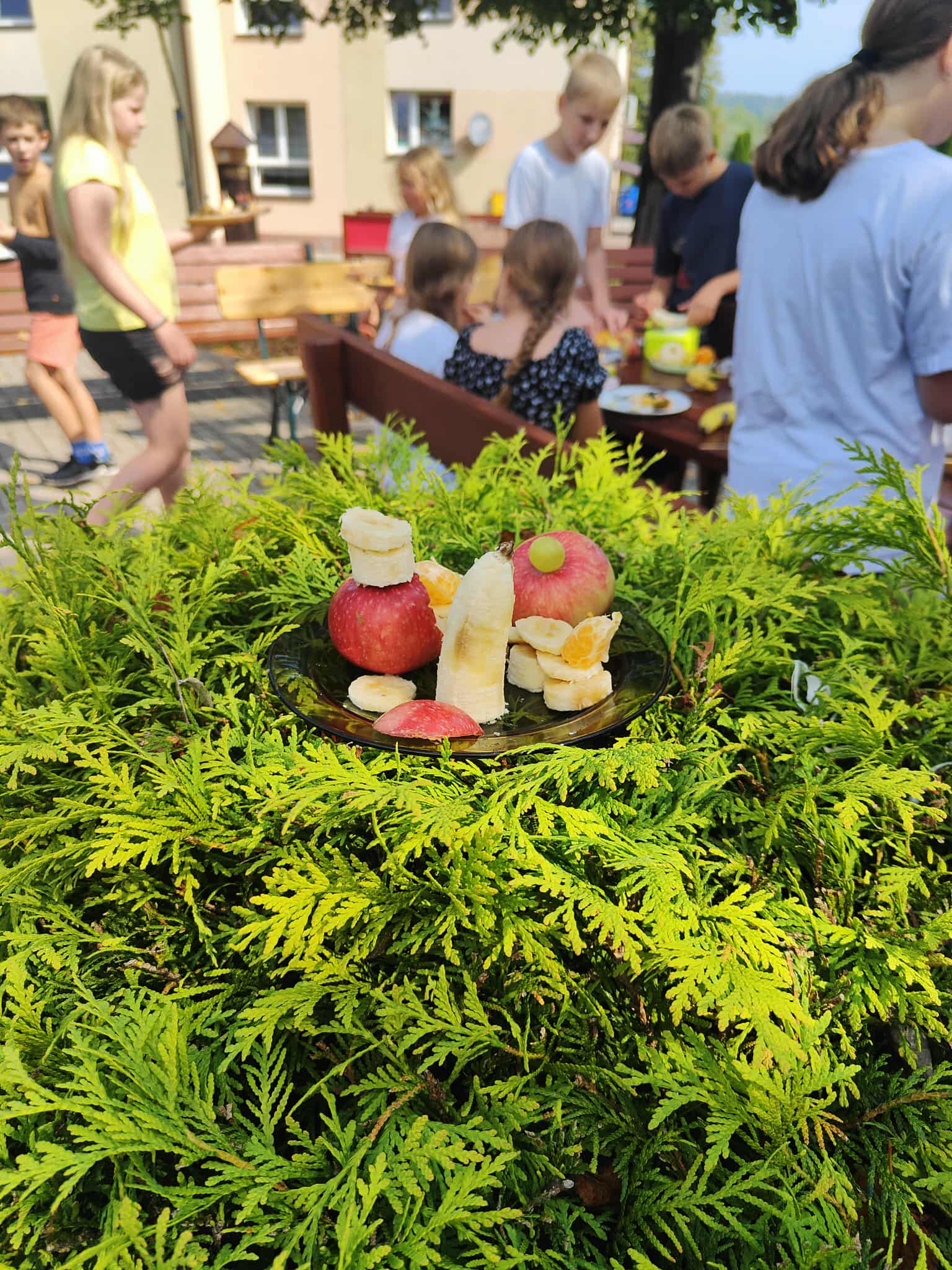 W piątek 5 września w naszej szkole odbyło się Narodowe Czytanie. W tym roku czytaliśmy utwory Jana Kochanowskiego. Ten renesansowy poeta uznawany jest za ojca literatury polskiej. Tworzył pieśni, fraszki i treny. Chodź mistrz z Czarnolasu żył w XVI w. jego utwory są aktualne do dziś. Akcja Narodowego Czytania w naszej szkole po raz kolejny odbyła się na świeżym powietrzu, na placu zabaw, w cieniu…lip. Była to świetna sceneria – szczególnie do odczytania fraszki „Na lipę”. Uczniowie klas II-VIII przedstawili piękne recytacje utworów Kochanowskiego. Dodatkową atrakcją były pomysłowe przebrania dzieci nawiązujące do epoki, w której żył poeta. Dekoracjami były plakaty promujące zdrowy styl życia zainspirowane fraszką „Na zdrowie”. następnie odbyły się warsztaty kulinarne. Uczniowie tworzyli na talerzykach obrazki z owoców. Oczywiście dzieła zostały zjedzone ze smakiem, ale wcześniej sfotografowane. Na koniec dzieci malowały kredą kolorowe półmiski pełne owoców. Pogoda dopisywała – nastroje również. A my po raz kolejny przekonaliśmy się, że czytanie to fantastyczna zabawa.