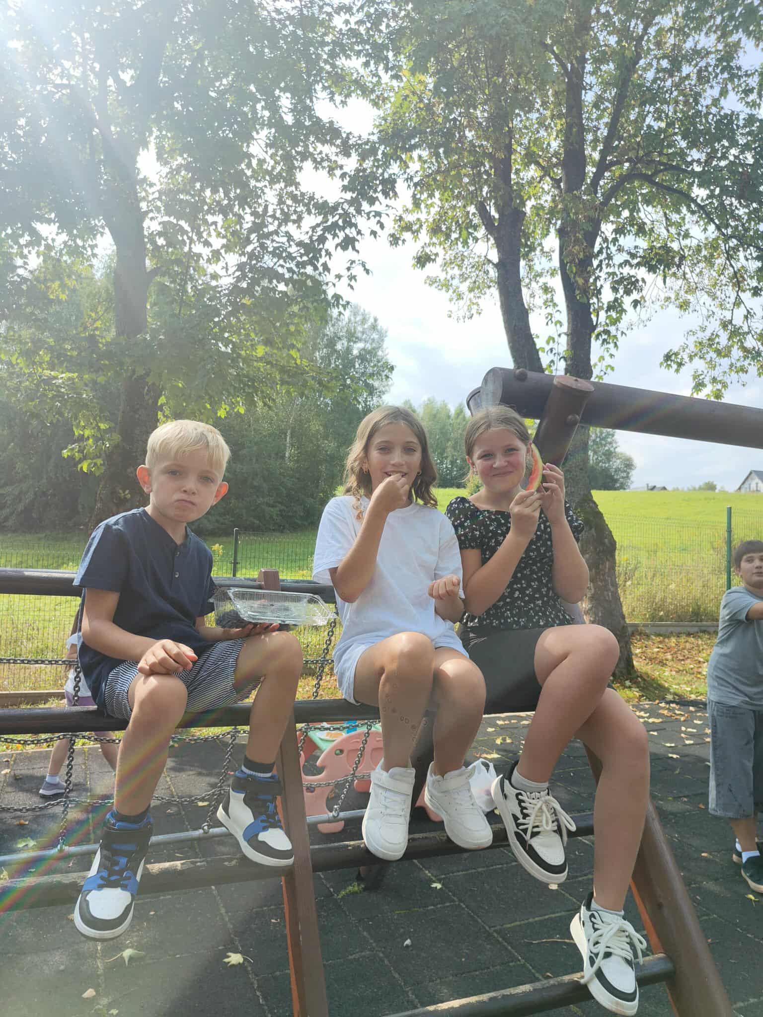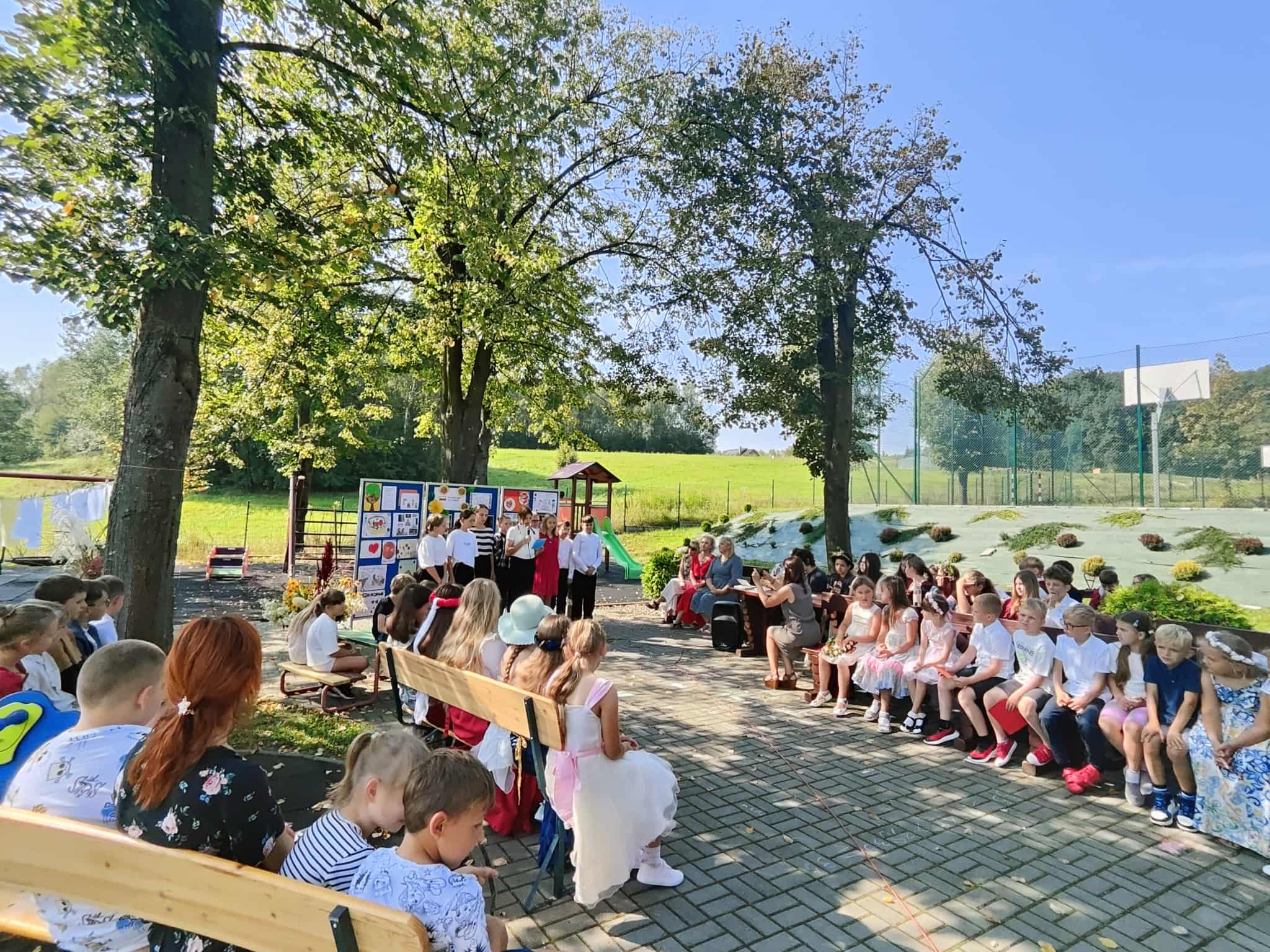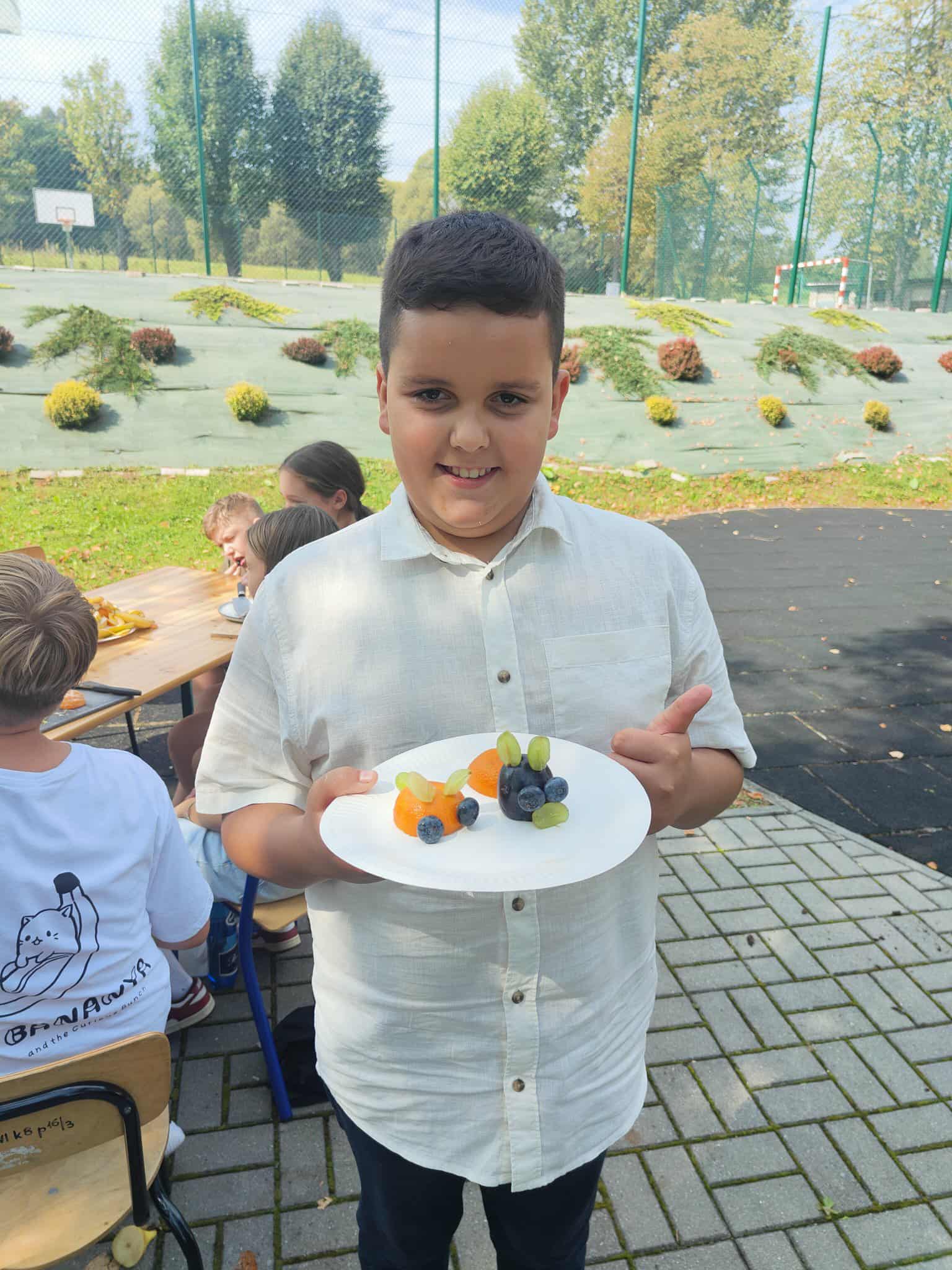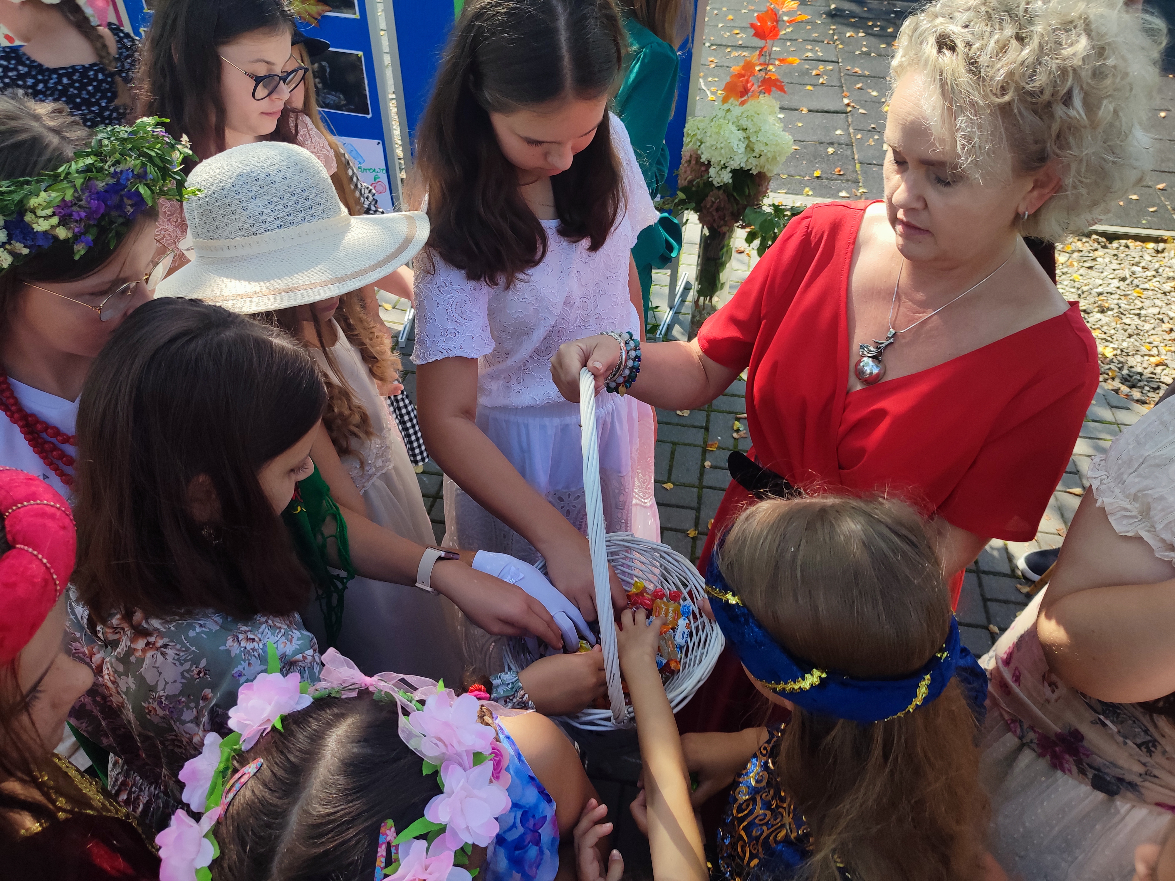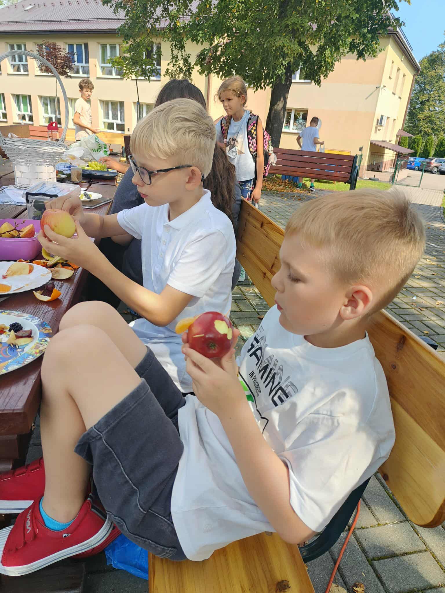 W piątek 5 września w naszej szkole odbyło się Narodowe Czytanie. W tym roku czytaliśmy utwory Jana Kochanowskiego. Ten renesansowy poeta uznawany jest za ojca literatury polskiej. Tworzył pieśni, fraszki i treny. Chodź mistrz z Czarnolasu żył w XVI w. jego utwory są aktualne do dziś. Akcja Narodowego Czytania w naszej szkole po raz kolejny odbyła się na świeżym powietrzu, na placu zabaw, w cieniu…lip. Była to świetna sceneria – szczególnie do odczytania fraszki „Na lipę”. Uczniowie klas II-VIII przedstawili piękne recytacje utworów Kochanowskiego. Dodatkową atrakcją były pomysłowe przebrania dzieci nawiązujące do epoki, w której żył poeta. Dekoracjami były plakaty promujące zdrowy styl życia zainspirowane fraszką „Na zdrowie”. następnie odbyły się warsztaty kulinarne. Uczniowie tworzyli na talerzykach obrazki z owoców. Oczywiście dzieła zostały zjedzone ze smakiem, ale wcześniej sfotografowane. Na koniec dzieci malowały kredą kolorowe półmiski pełne owoców. Pogoda dopisywała – nastroje również. A my po raz kolejny przekonaliśmy się, że czytanie to fantastyczna zabawa.