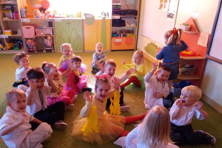 Po wzruszającej części oficjalnej na przybyłych gości czekał słodki poczęstunek przygotowany przez rodziców. Na zakończenie wspólnego biesiadowania dzieci wraz z rodzicami, panią Dyrektor oraz wychowawcami spędziły czas radośnie tańcząc i śpiewając znane wszystkim piosenki.