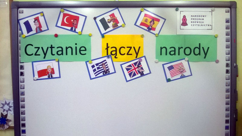 f01W ramach realizacji Narodowego Programu Rozwoju Czytelnictwa uczniowie klas 5 i 6 wraz z nauczycielem języka angielskiego przygotowali zajęcia dla dzieci z oddziału „0”. Tematem przewodnim zajęć było hasło: „ Czytanie łączy narody”. Przedstawiciele klas starszych czytali „zerówkowiczom” książeczki anglojęzyczne z kanonu literatury dziecięcej. Prowadzenie zajęć bardzo spodobało się dzieciom, wszystkie aktywnie w nich uczestniczyły słuchając i oglądając prezentowane książeczki. Dla uczniów klas starszych czytanie młodszym kolegom było wyróżnieniem, pokazali i udowodnili, że warto się uczyć, by móc później dzielić się swoją wiedzą z innymi. Na zakończenie wszyscy uczestnicy czytelniczego spotkania zaśpiewali wspólnie piosenkę ruchową.