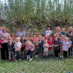 To nie była tylko wizyta poglądowa, dzieci wzięły udział w zbieraniu ziemniaków i jabłek w sadzie. Byliśmy na polu uprawnym. Braliśmy udział w zabawie na ilość zebranych ziemniaków. Sprawdziliśmy, jak smakują zerwane jabłka z drzewa! Zwiedziliśmy tez piwnice gdzie Pani Renata przechowuje zebrane płody ziemi i różne przetwory. Mogliśmy więc na własne oczy przekonać się, jak wygląda życie i praca na wsi, skąd biorą się ziemniaczki oraz inne warzywa. Wiemy już, że rosną w ziemi a niektórzy rolnicy zbierają je i dostarczają do miasta, aby trafiły później na nasze stoły.