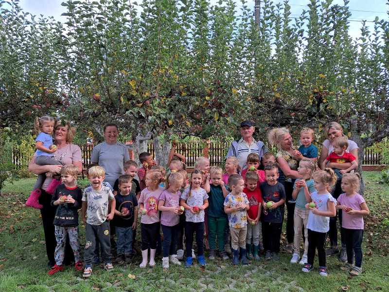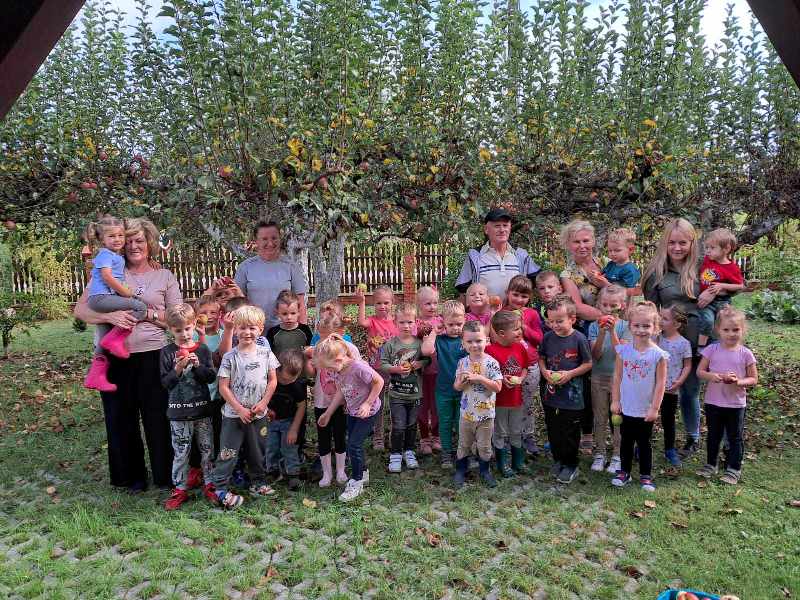 To nie była tylko wizyta poglądowa, dzieci wzięły udział w zbieraniu ziemniaków i jabłek w sadzie. Byliśmy na polu uprawnym. Braliśmy udział w zabawie na ilość zebranych ziemniaków. Sprawdziliśmy, jak smakują zerwane jabłka z drzewa! Zwiedziliśmy tez piwnice gdzie Pani Renata przechowuje zebrane płody ziemi i różne przetwory. Mogliśmy więc na własne oczy przekonać się, jak wygląda życie i praca na wsi, skąd biorą się ziemniaczki oraz inne warzywa. Wiemy już, że rosną w ziemi a niektórzy rolnicy zbierają je i dostarczają do miasta, aby trafiły później na nasze stoły.