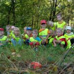 Jesień to piękna pora roku, która rozpoczyna się 23 września.  Liście dębów, brzóz i innych drzew żółkną, czerwienią się i przybierają ciekawe ubarwienie, by później upaść i razem z innymi tworzyć kolorowy jesienny dywan. Grupa Biedronek tego dnia wybrała się na spacer do pobliskiego lasu w poszukiwaniu oznak jesieni. Dzieci obserwowały jesienny krajobraz, wypowiadały się na temat swoich spostrzeżeń, rozpoznawały drzewa liściaste oraz iglaste, obserwowały korę drzew. Opisywały wygląd znalezionych liści i zauważonych grzybów. Materiał przyrodniczy przyniesiony ze spaceru został wykorzystany do wykonania  pracy plastycznej i umieszczony w kąciku przyrodniczym.  A korzystając ze słonecznej pogody aktywnie spędziliśmy czas na powietrzu.