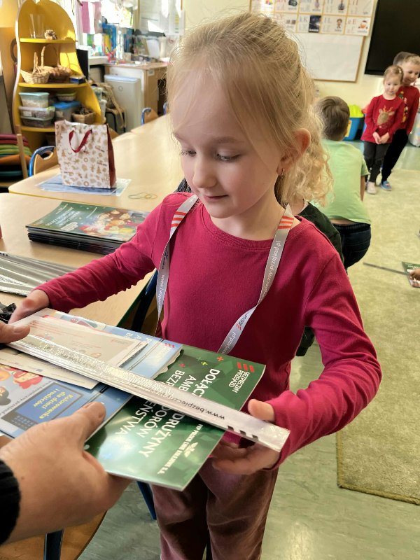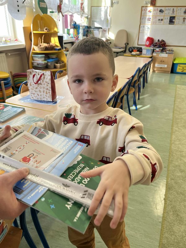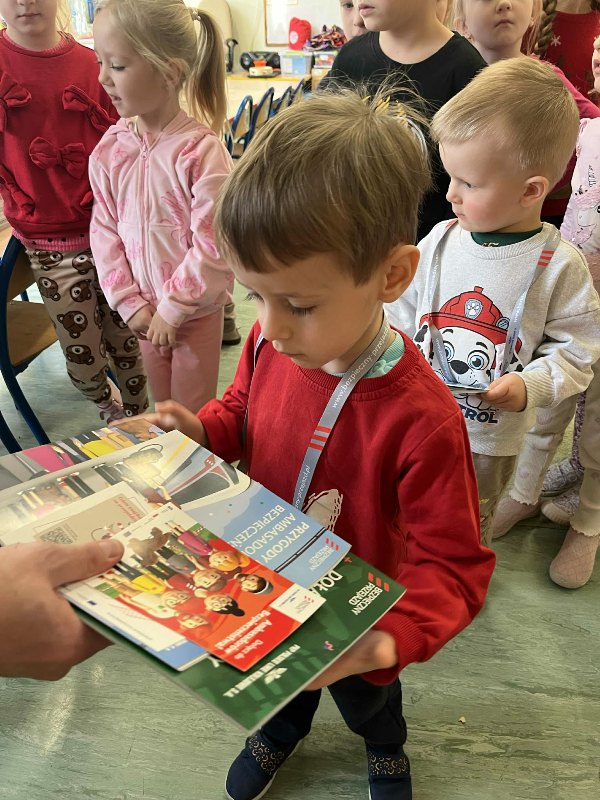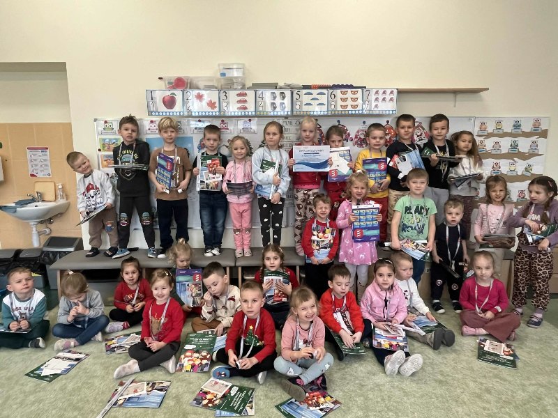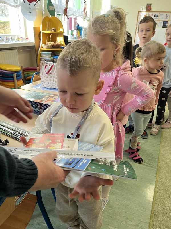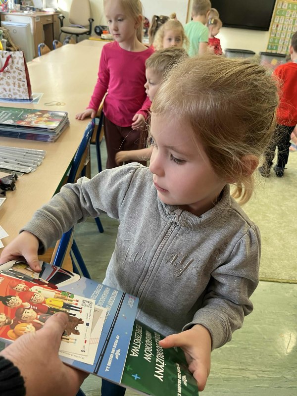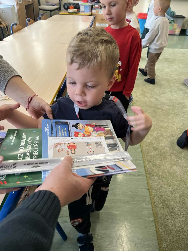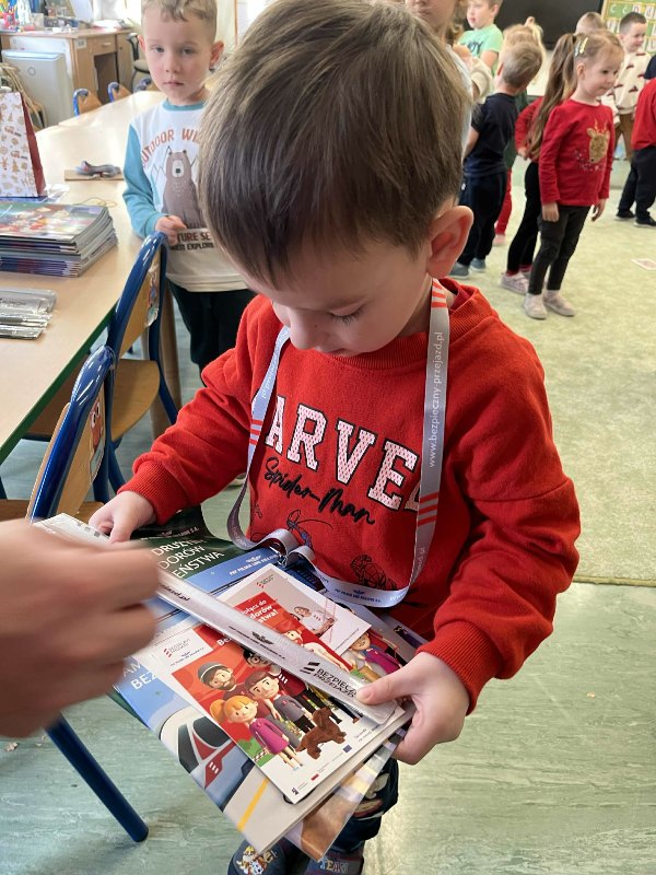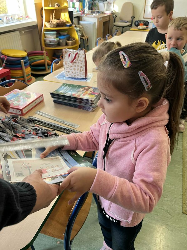 Podczas wizyty pana instruktora PKP -PLK Nowy Sącz dzieci miały okazję dowiedzieć się, jak bezpiecznie podróżować pociągiem. Zapoznały się z zasadami bezpiecznego przekraczania przejazdów kolejowo – drogowych oraz ze znakami drogowymi informującymi o zbliżaniu się do przejazdów kolejowo – drogowych. Tym samym dzieci zostały „Ambasadorami Bezpieczeństwa”. Na zakończenie spotkania każdy przedszkolak otrzymał „pakiecik bezpiecznego przedszkolaka”.