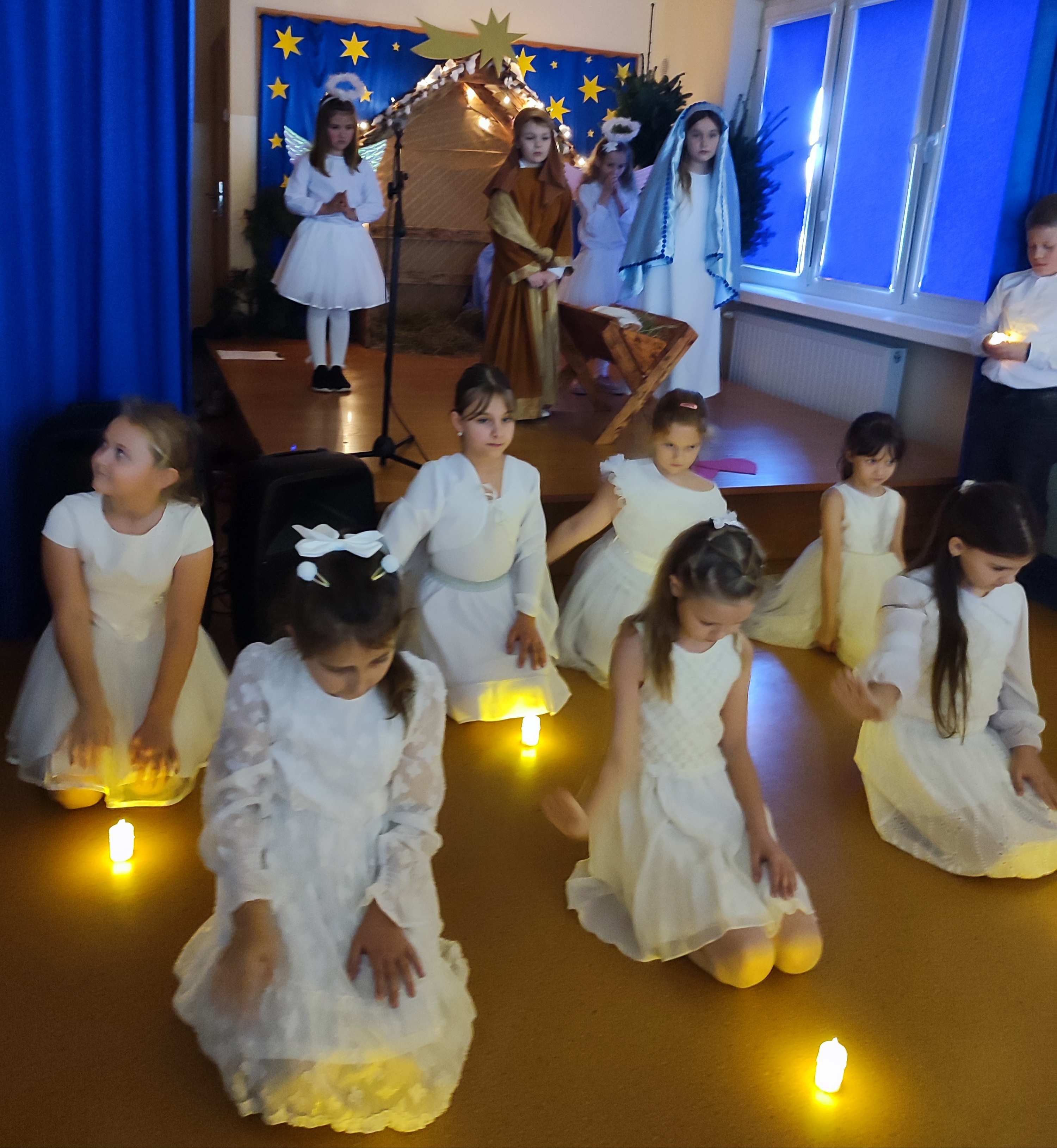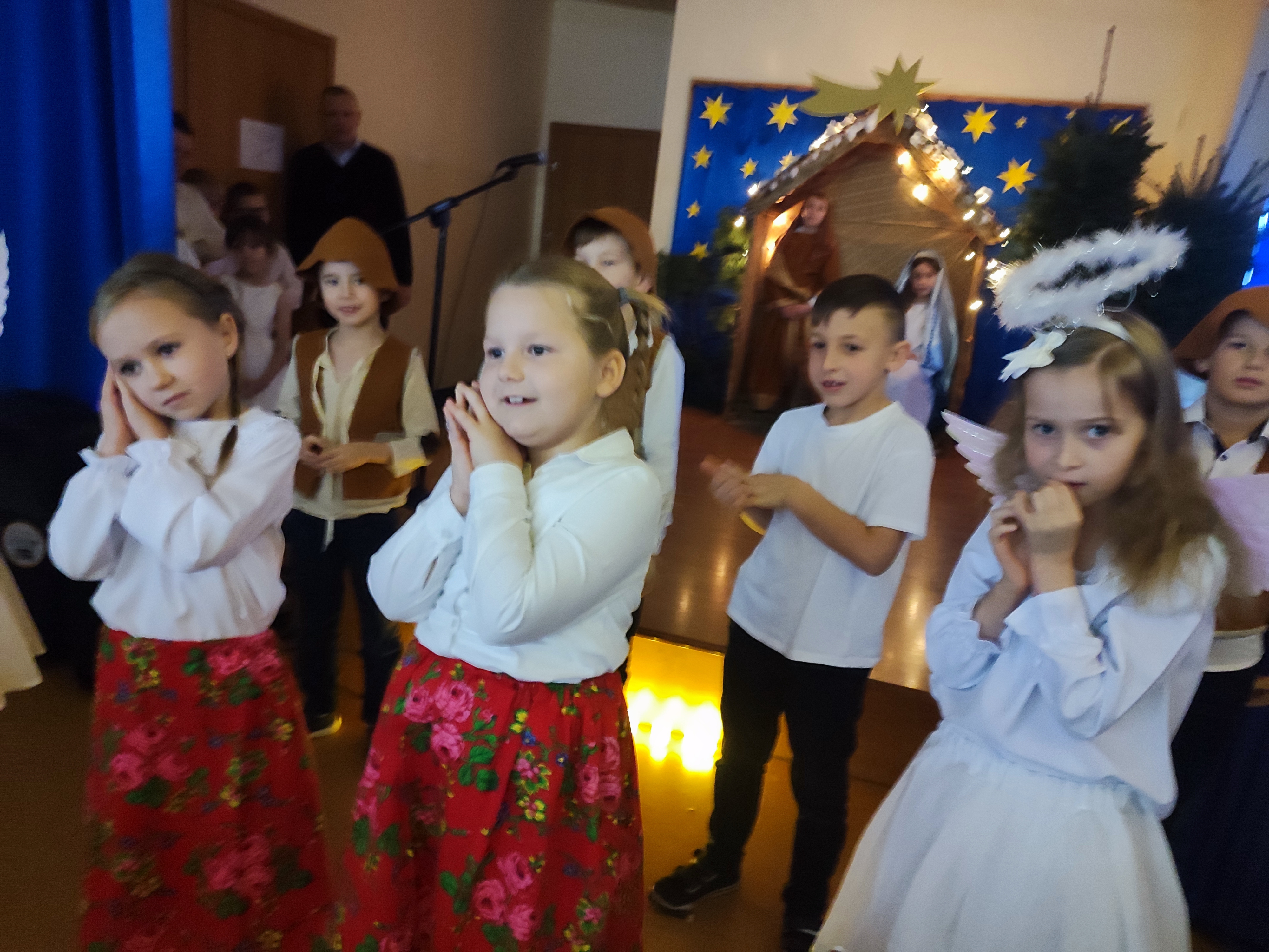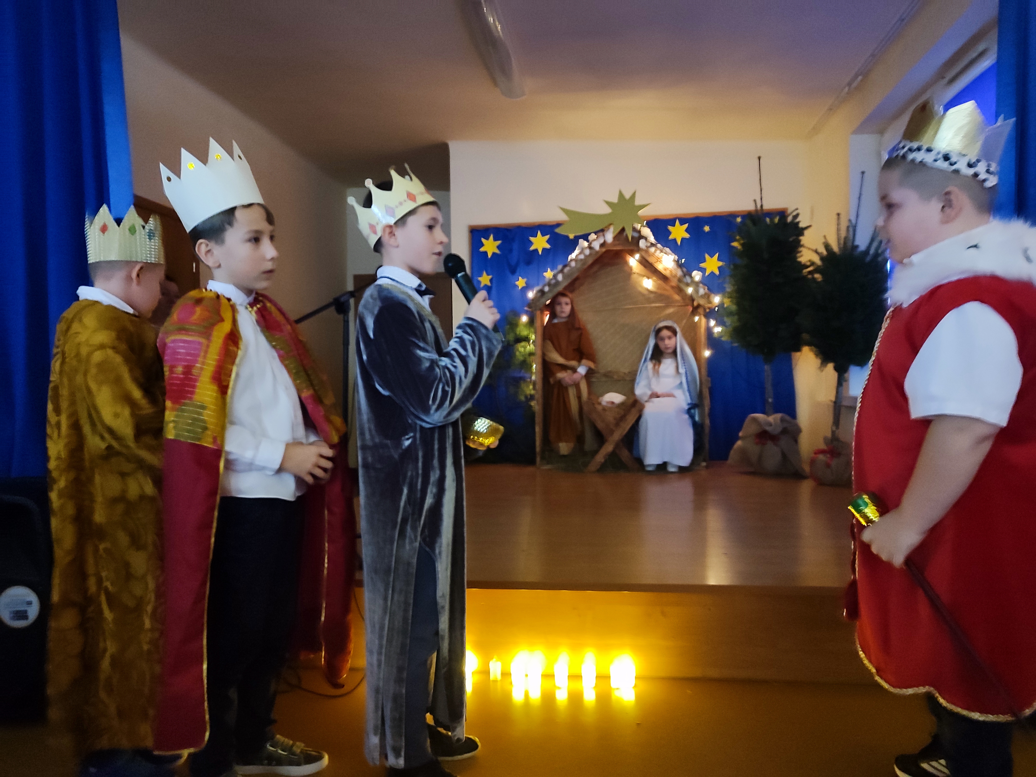Kolejnym punktem były jasełka przygotowane przez uczniów klas I–III. Młodzi artyści z wielkim zaangażowaniem zaprezentowali historię narodzin Jezusa, zachwycając zgromadzonych piękną grą aktorską oraz przepięknym tańcem, który wzbudził ogromny aplauz publiczności.