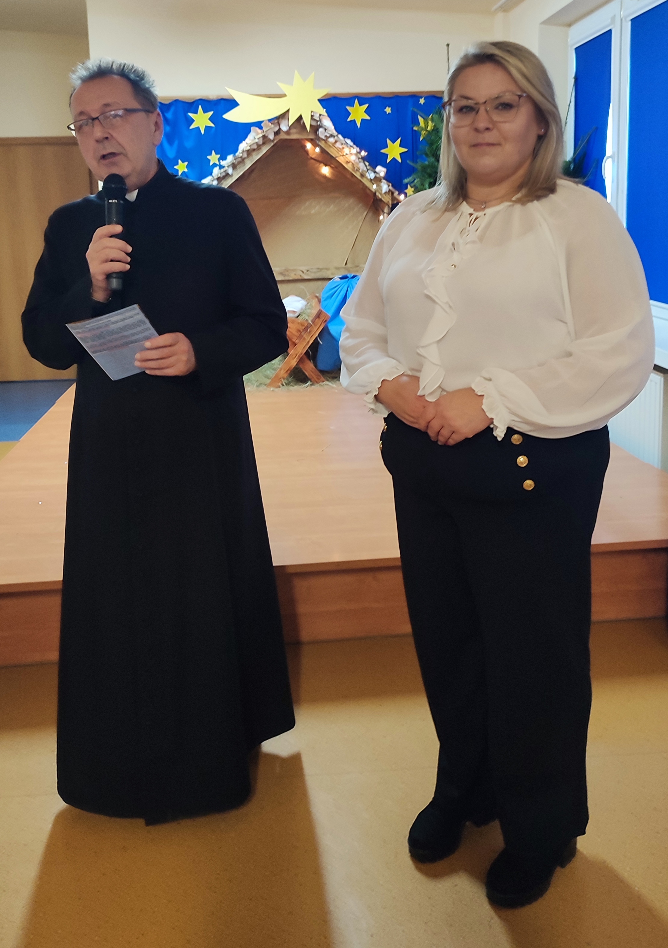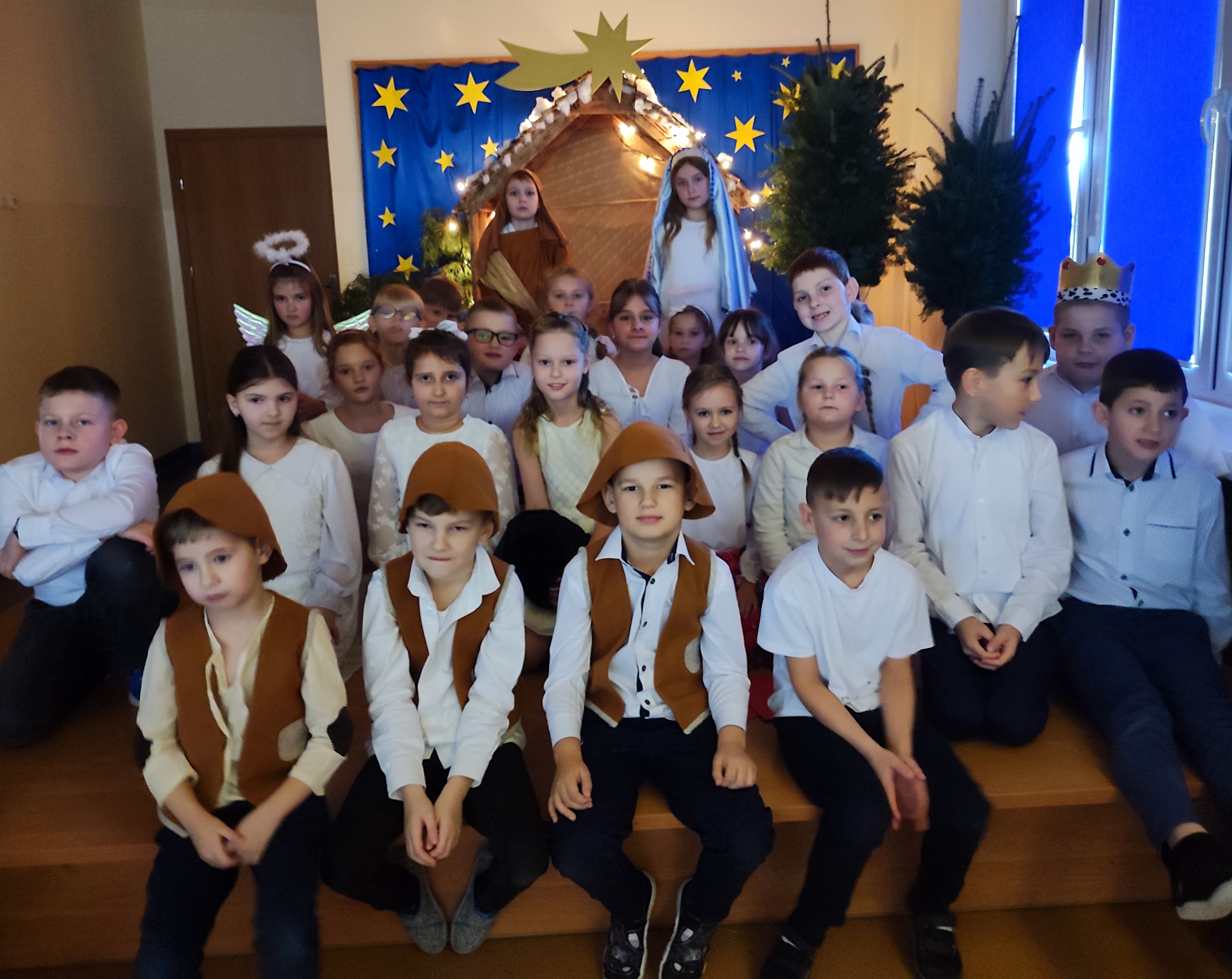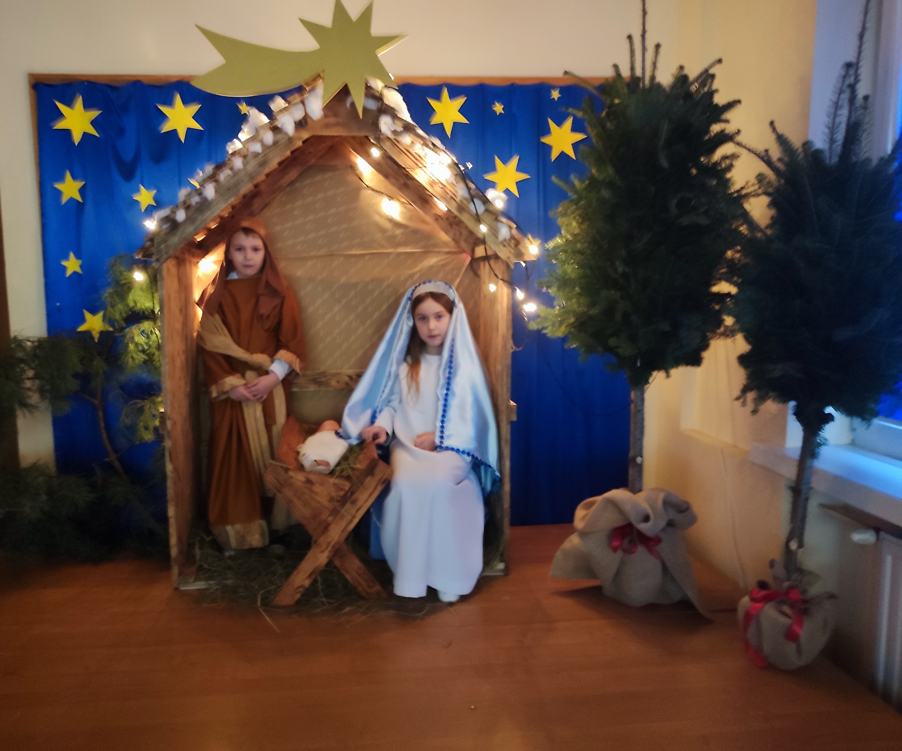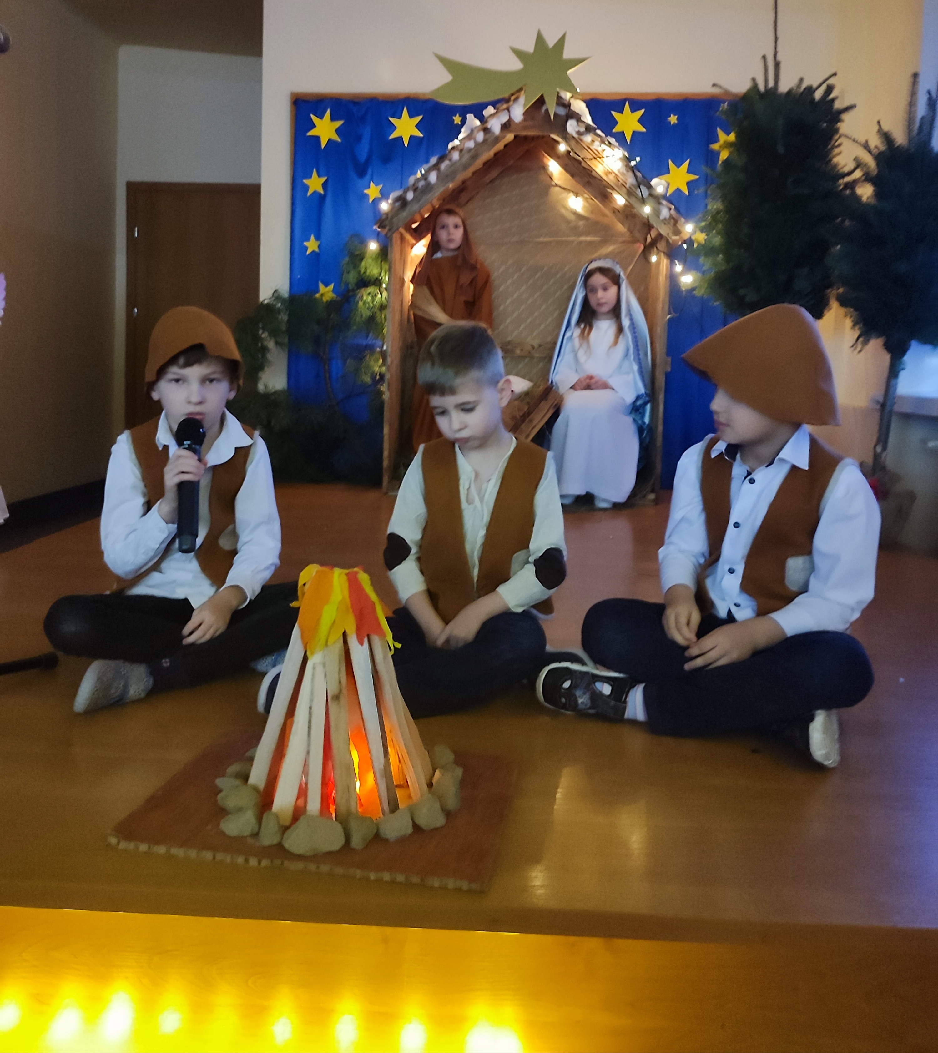 Kolejnym punktem były jasełka przygotowane przez uczniów klas I–III. Młodzi artyści z wielkim zaangażowaniem zaprezentowali historię narodzin Jezusa, zachwycając zgromadzonych piękną grą aktorską oraz przepięknym tańcem, który wzbudził ogromny aplauz publiczności.