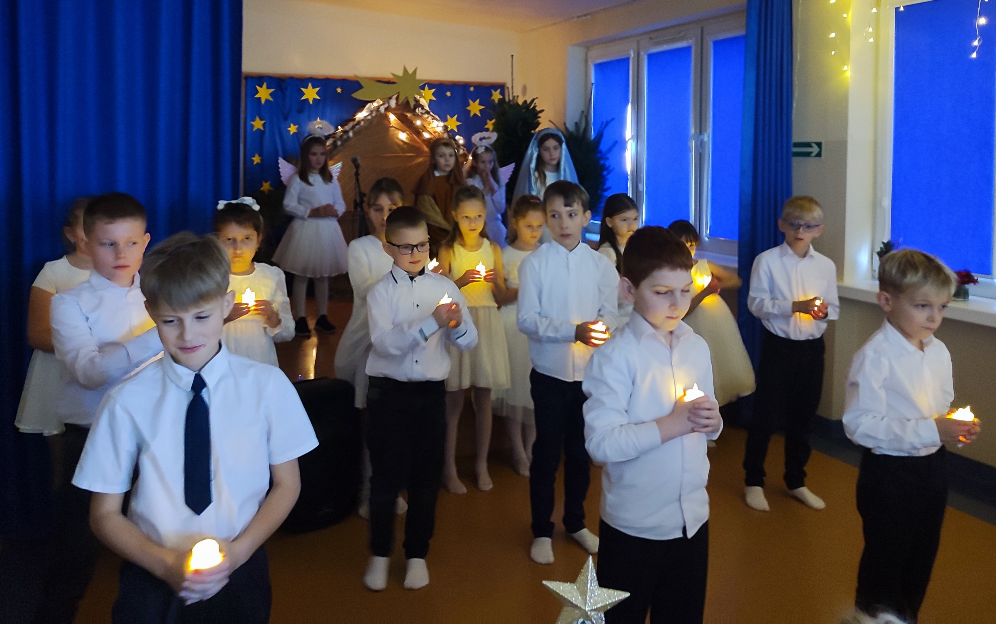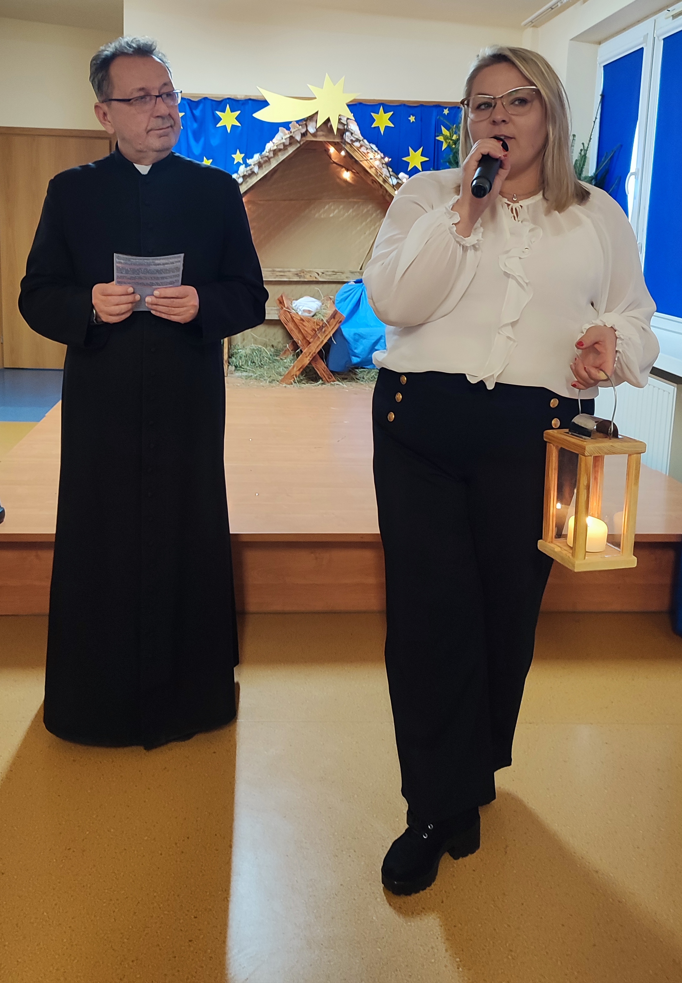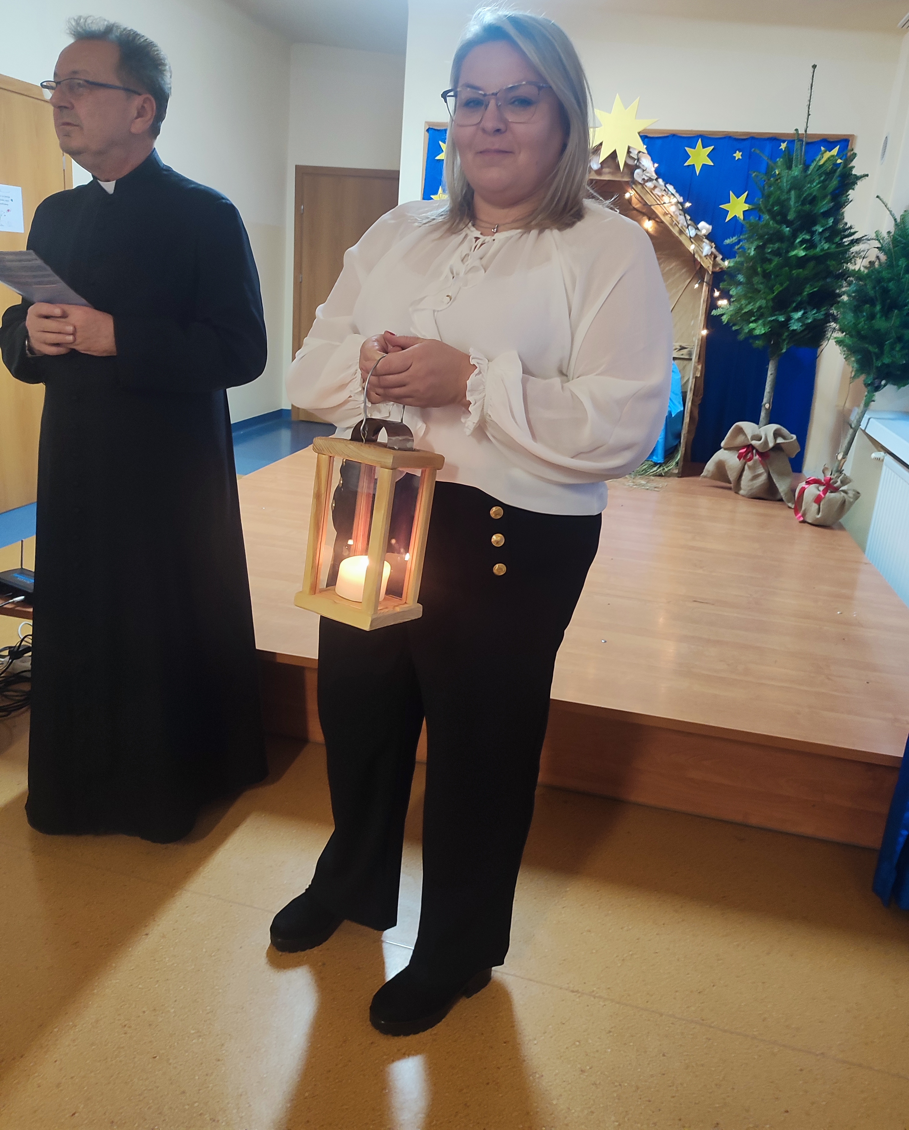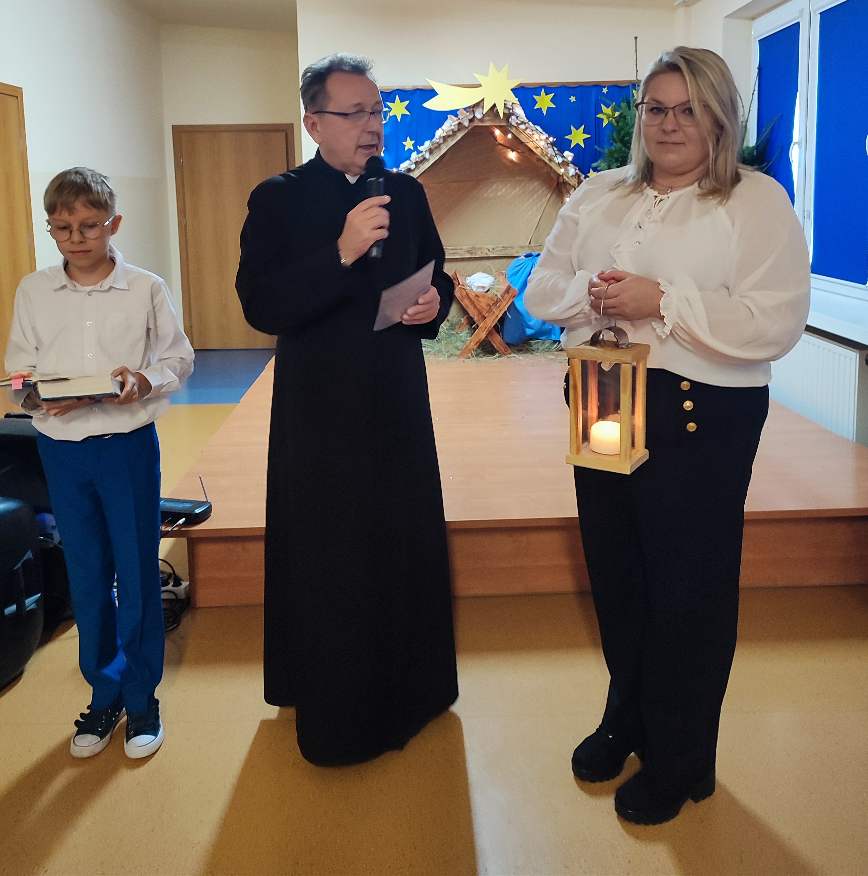 W wyjątkowej, pełnej ciepła i radości atmosferze odbyło się spotkanie świąteczne całej społeczności szkolnej. Uroczystość rozpoczęła się modlitwą, którą poprowadził ksiądz proboszcz, a następnie został odczytany fragment z Pisma Świętego, wprowadzający wszystkich w refleksyjny, bożonarodzeniowy nastrój. Podczas naszego spotkania świątecznego obecne było Światło Betlejemskie – symbol pokoju, nadziei i jedności.