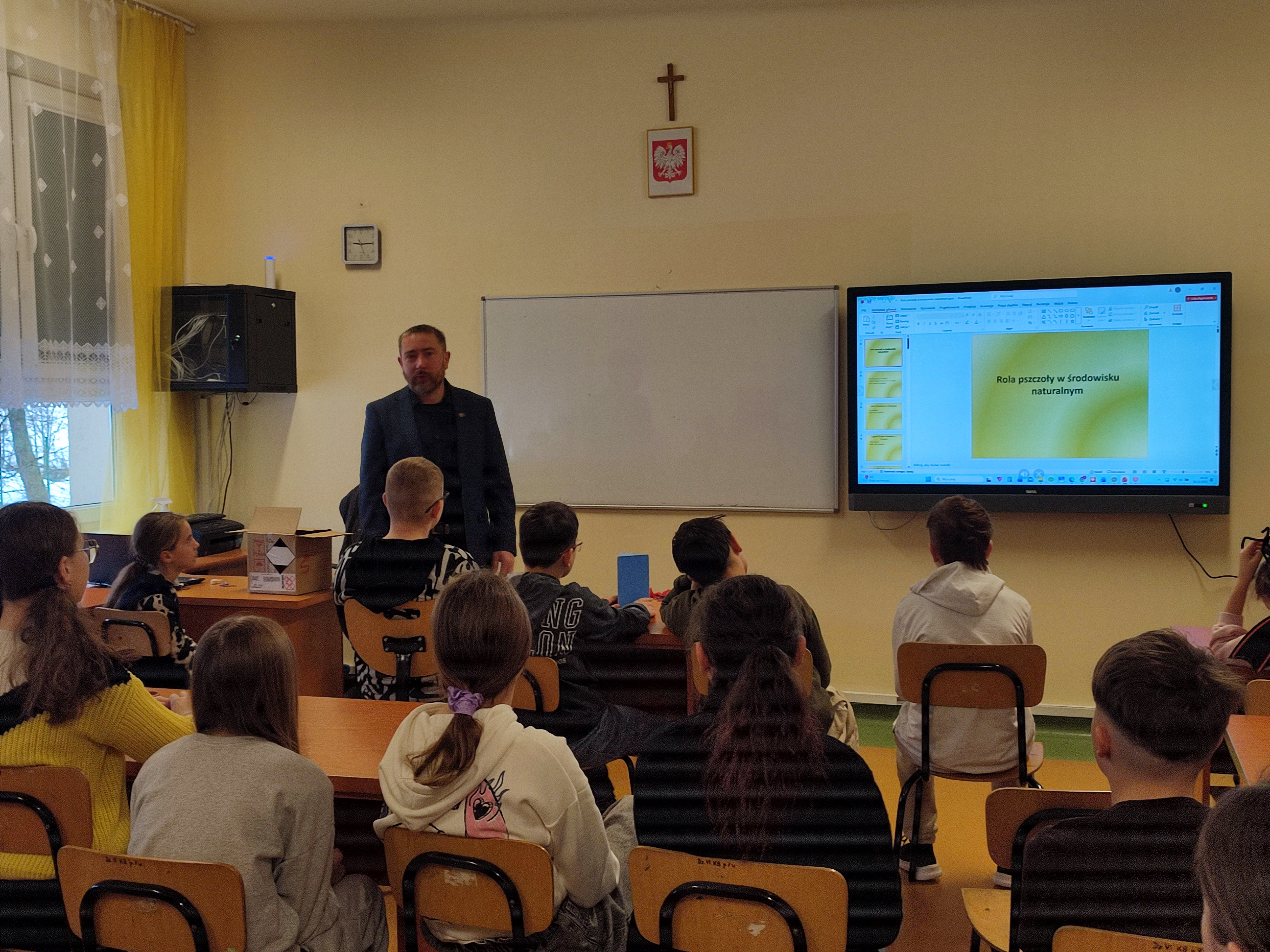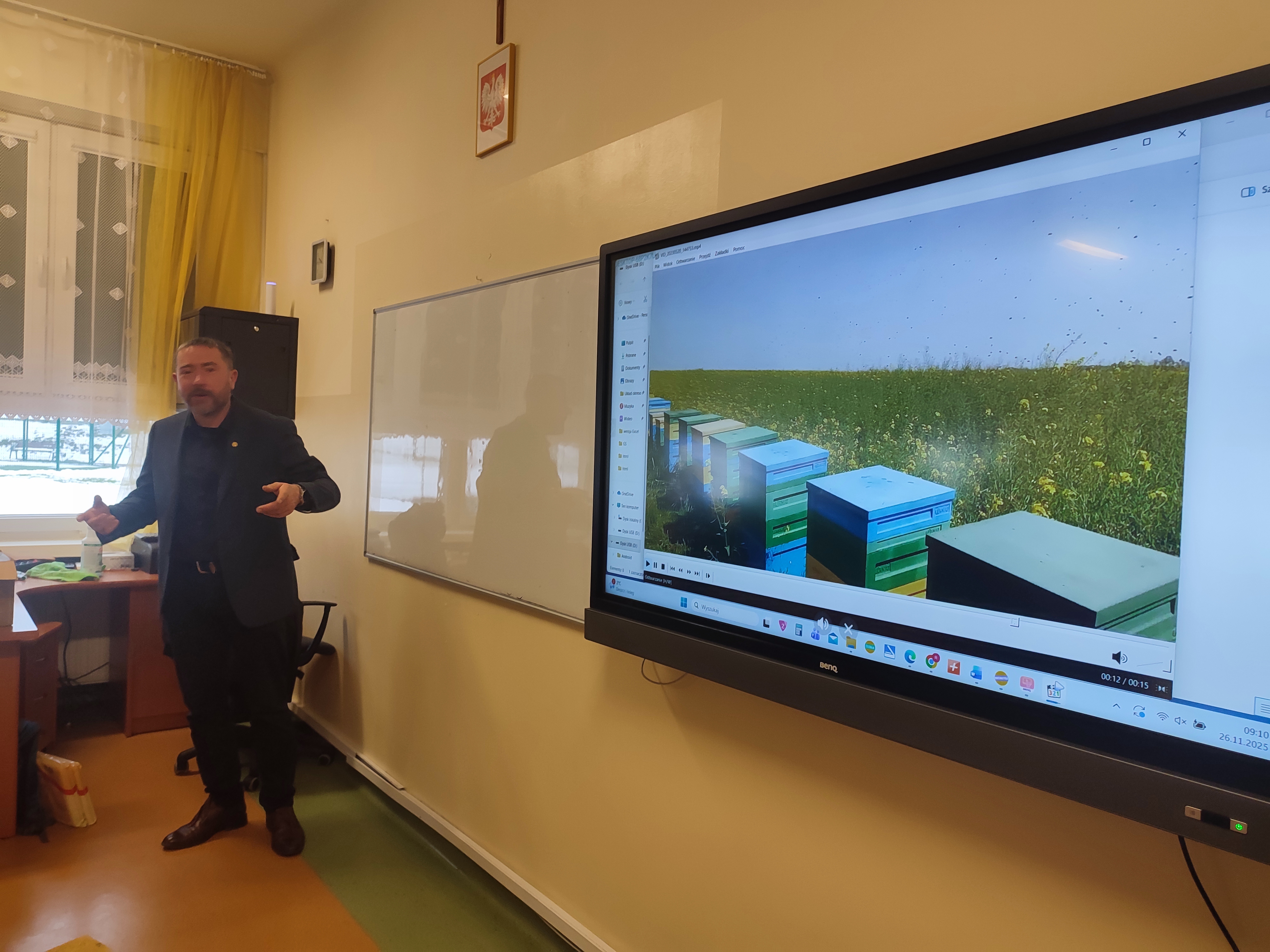 W naszej szkole 26 listopada odbyło się wyjątkowe spotkanie edukacyjne z panem Pawłem Jaworem, pszczelarzem z wieloletnim doświadczeniem. Wydarzenie skierowane było do uczniów klas 4–8 i wzbudziło ogromne zainteresowanie zarówno młodszych, jak i starszych uczestników.