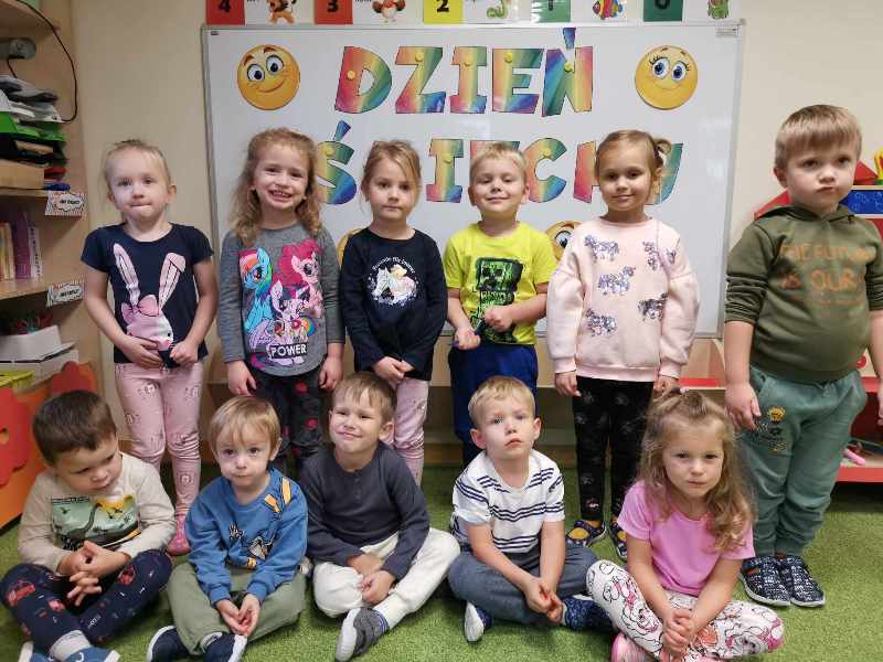 W piątek 4 października, jak co roku obchodziliśmy w naszym przedszkolu Światowy Dzień Uśmiechu. Zabawy tego dnia miały każdego przedszkolaka wprawić w dobry nastrój i wywołać dużo uśmiechu na twarzy. Był to idealny moment, aby uświadomić dzieciom znaczenie optymistycznego podejścia do życia. Uśmiech nic nas nie kosztuje, a jak wiele może znaczyć dla drugiego człowieka. Podczas zajęć przedszkolaki doskonaliły umiejętność rozpoznawania i nazywania uczuć. Wykonały wesołe prace plastyczne oraz częstowały ciasteczkami z uśmiechem.