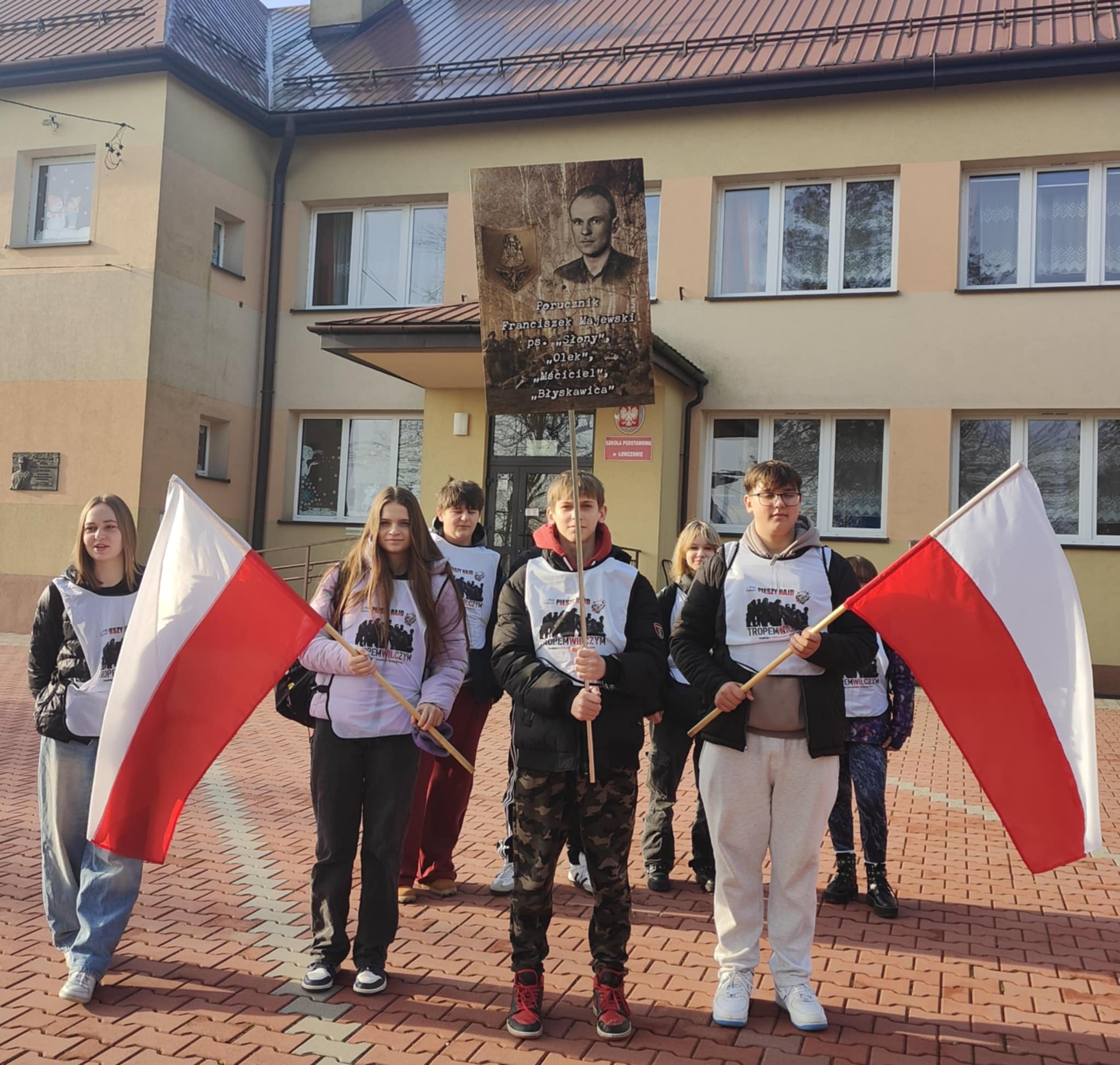 4 marca 2025 r. odbył się VII Pieszy Rajd Tropem Wilczym Pamięci Żołnierzy Wyklętych, w którym uczestniczyli uczniowie klasy 8 wraz z panią Krystyną Kruczek. W tym roku uroczystości plenerowe odbyły się przy cmentarzu wojennym nr 159 Meszna Opacka (Lichwin). Na zakończenie rozdane zostały dyplomy i nagrody w konkursach. W plastycznym „Na kartkę z kalendarza o Żołnierzach Wyklętych” II miejsce otrzymał Franciszek Bachula a wyróżnienie Jan Baranowski. W konkursie tym wzięło udział 12 uczniów naszej szkoły z kl. 5, 6 i 7. Klasa 8 wzięła również udział w konkursie fotograficznym „Żołnierze Wyklęci. Historia w zdjęciu zamknięta.” Na lekcji historii wcielając się w Żołnierzy Wyklętych odzwierciedlili scenę z żołnierskiego życia.