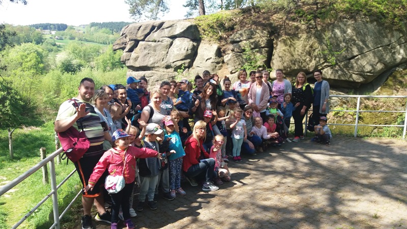 Uczestnicy projektu „Kreatywnie-rodzinnie!” wraz ze swoimi rodzicami wybrali się na wycieczkę do Skamieniałego Miasta w Ciężkowicach. Wędrówka szlakiem turystycznym wraz z przewodnikiem-animatorem ukazała jak piękne miejsca znajdują się w najbliższej okolicy. Podczas zwiedzania rezerwatu poznaliśmy ciekawe legendy związane z powstaniem tego miejsca. Mamy nadzieję, że chwile spędzone w tym magicznym miejscu zachęcą do regionalnej turystyki rodzinnej. Wyjazd mógł być możliwy dzięki środkom pozyskanym przez Stowarzyszenie „Róbmy swoje” na realizację działań „Kreatywnie-rodzinnie!” w X edycji programu „Na dobry początek” realizowanego przez Fundację BGK im J.K. Steczkowskiego.