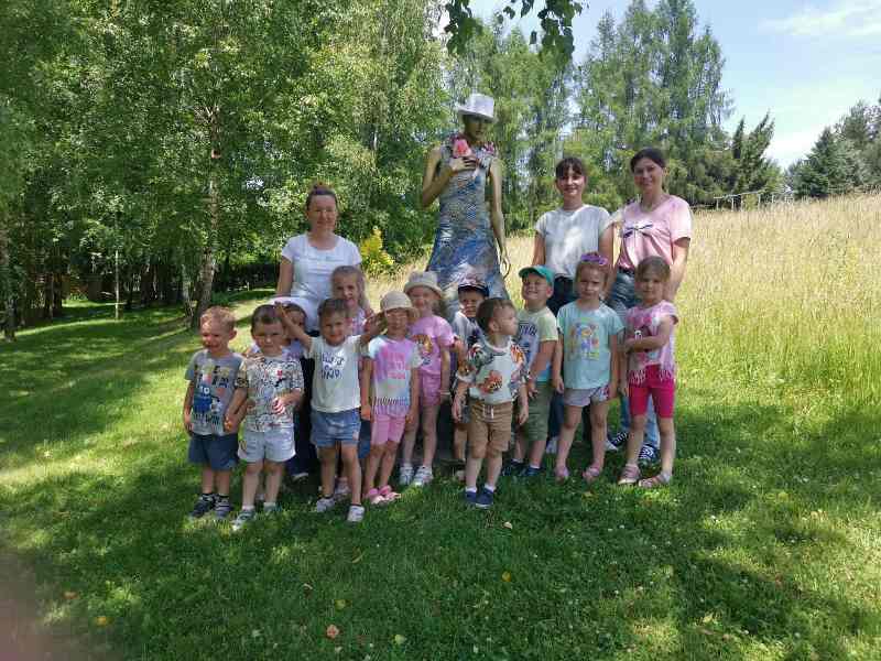 Nasza wyjątkowa przygoda rozpoczęła się od radosnego przywitania hasłem Vesnoludków, które od razu wprowadziło nas w magiczny klimat tego niezwykłego miejsca. Na dobry początek zostaliśmy poczęstowani pyszną herbatką, która dodała nam energii na cały dzień. Następnie, pod czujnym okiem Pań pracujących w Krainie Vesny, wzięliśmy udział w rozgrzewce tanecznej, która rozbudziła nasze ciała i humory. Pełni energii wyruszyliśmy na leśną wędrówkę, podczas której zbieraliśmy i rozpoznawaliśmy rośliny jadalne – dowiadując się wielu ciekawostek o ich właściwościach i zastosowaniu. Z zebranych ziół własnoręcznie przygotowaliśmy vesnaki – pachnące chlebki z ziołami, które dzieci z zaangażowaniem formowały i piekły. Po kulinarnych przygodach przyszedł czas na zabawy na leśnym placu zabaw oraz wspólne harce magicznej kuli, pełne radości i śmiechu. Na zakończenie tego pełnego wrażeń dnia, Panie z Krainy Vesny wręczyły dzieciom kolorowe balony na pożegnanie, co było pięknym i wzruszającym akcentem kończącym naszą wyprawę.