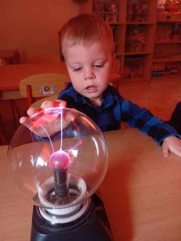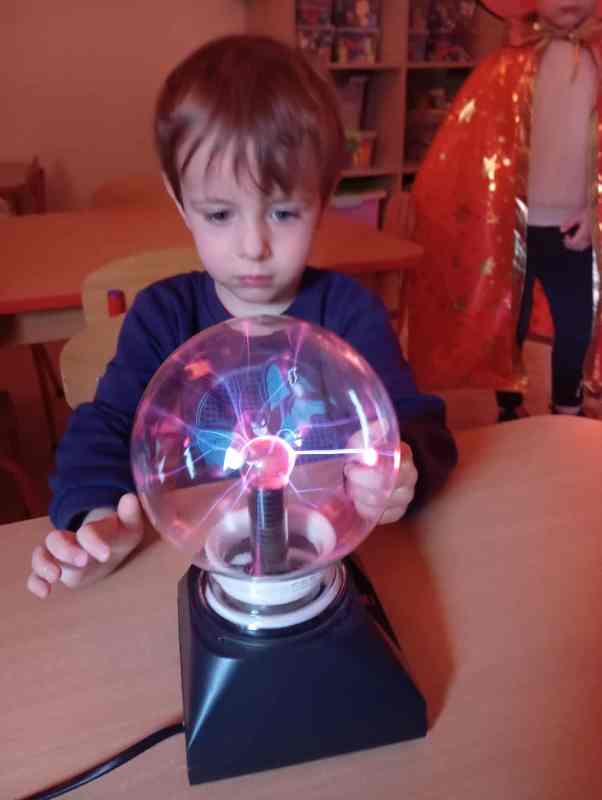 Podczas tegorocznej zabawy andrzejowej w naszym przedszkolu nie zabrakło wspaniałej zabawy i wielu niezapomnianych emocji. Pierwszy raz postanowiliśmy spędzić go trochę inaczej niż zwykle, bo jak wiadomo, nie od wróżb zależy nasza przyszłość… Działania innowacyjne jakie w tym dniu zaprezentowane zostały dzieciom to użycie kuli plazmowej do edukacyjnych pokazów, podczas których dzieci oberwały widowiskowe wyładowania elektryczne, dotykając ją, rozproszone strumienie światła podążały za ruchem przyłożonej do niej palców. Dzieci mogą również zobaczyć, jak kula wpływa na inne przedmioty, oraz poznały działanie i zastosowanie latarki wykorzystując do tego „lustrzane karty”. Oczywiście nie obyło się bez tradycyjnych pląsów i pysznego poczęstunku.